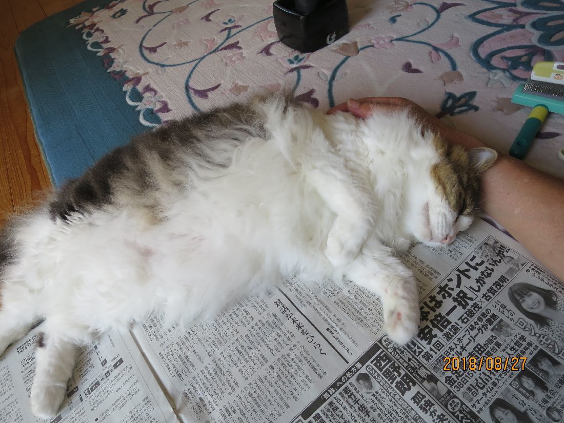ブラッシングを済ませ、新聞の邪魔をして・・・