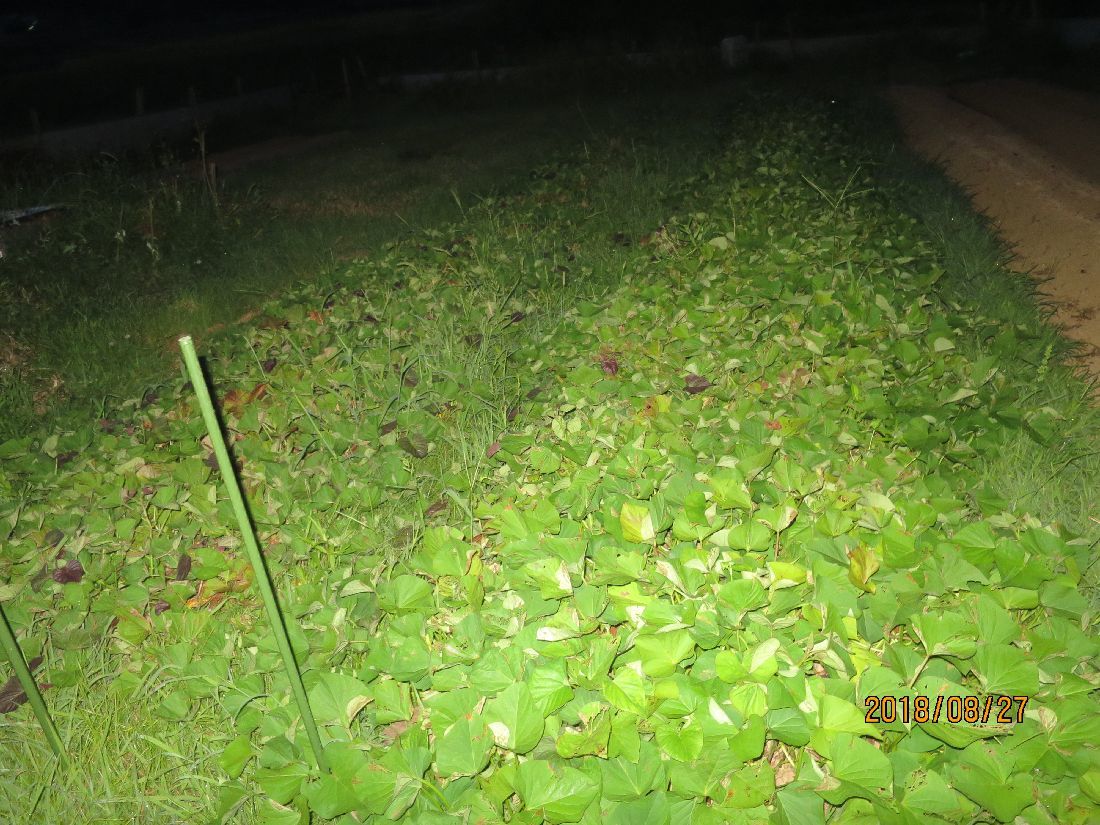 とりあえずサツマイモの様子です。わかりにくいですが大分茂ってきました。