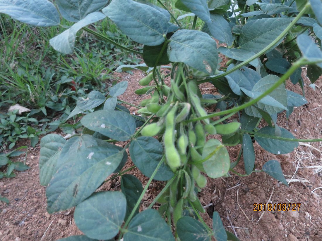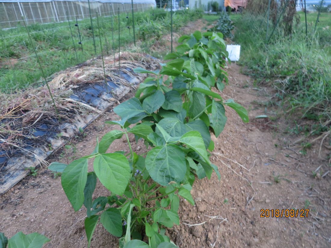 枝豆は莢が膨らんでいます。風で大分ゆすられたようです。