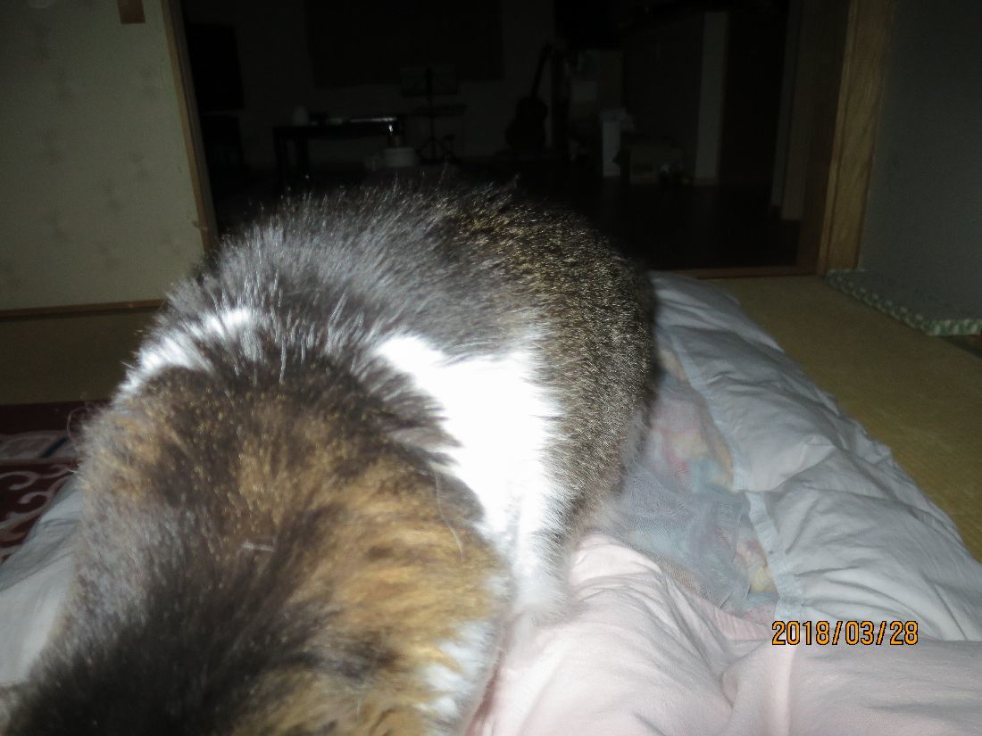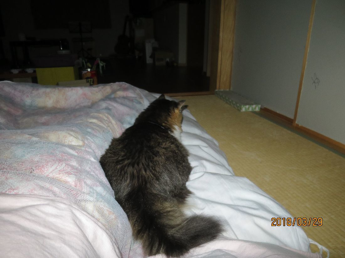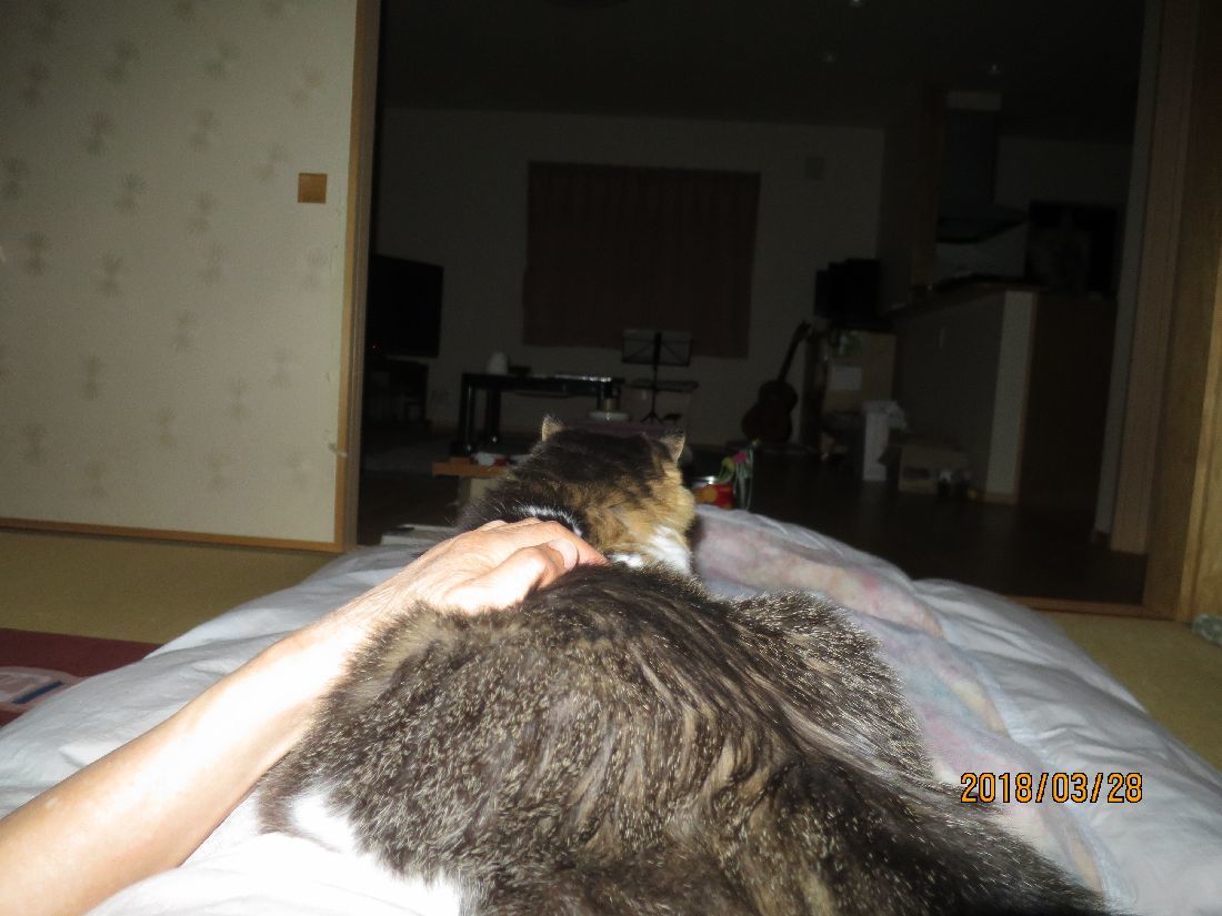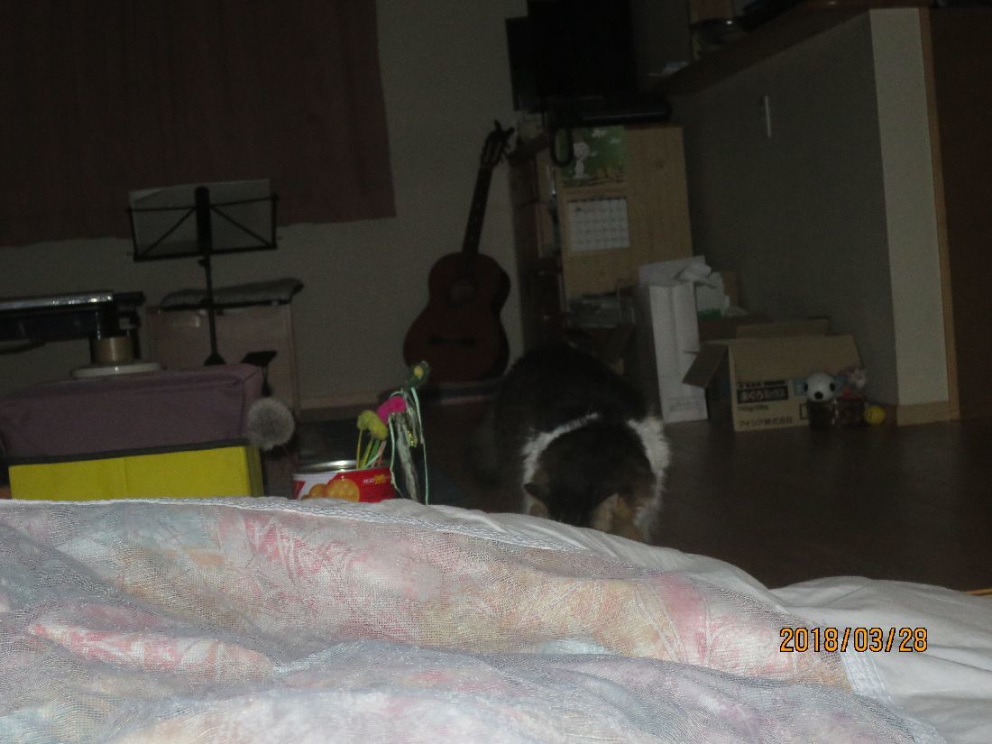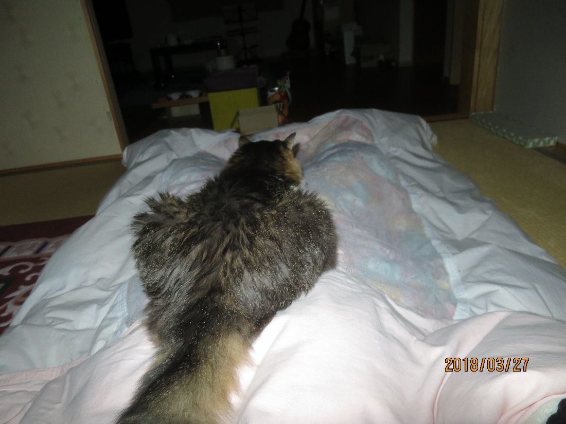 あらら、枕元まで持ってきました。