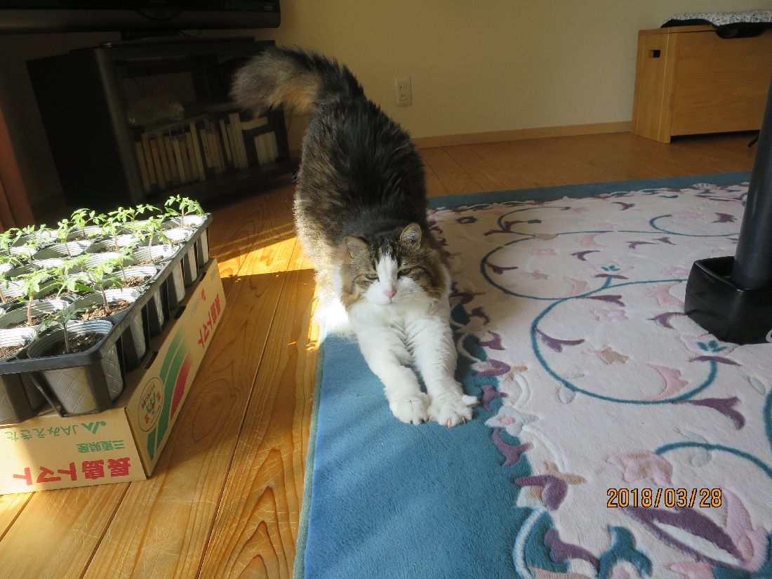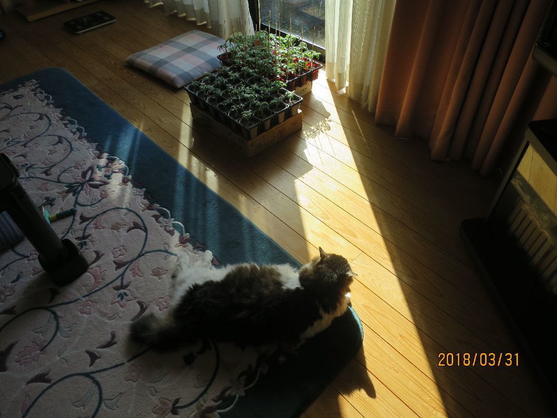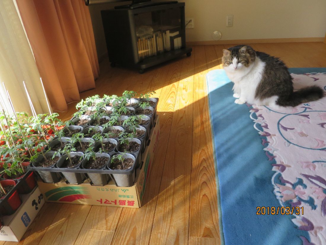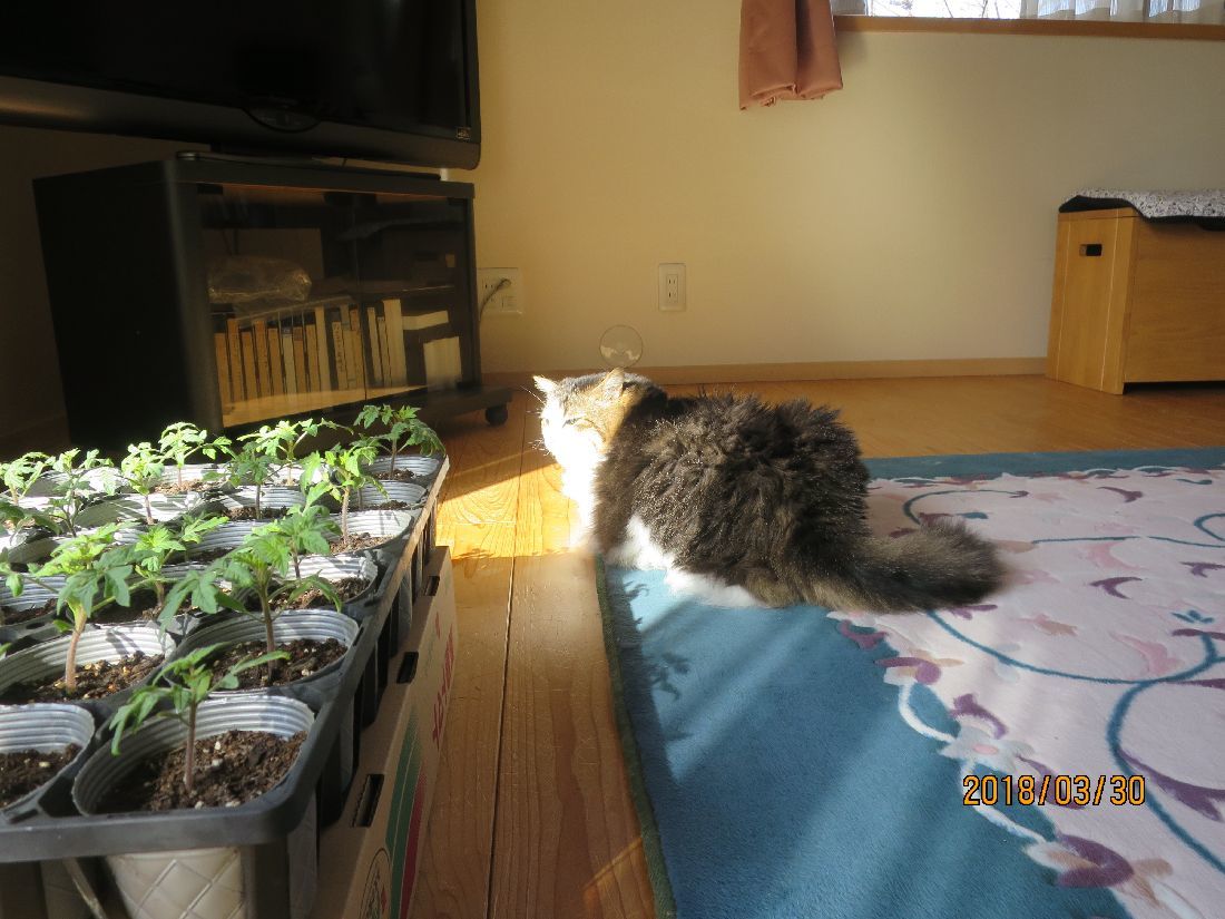 ヨロヨロと起きましてトマトを窓辺へ。