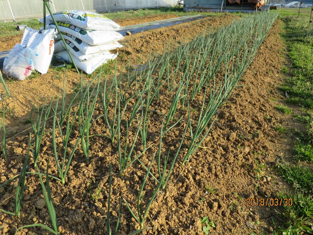 ニンニク畝の除草と中耕をしました。