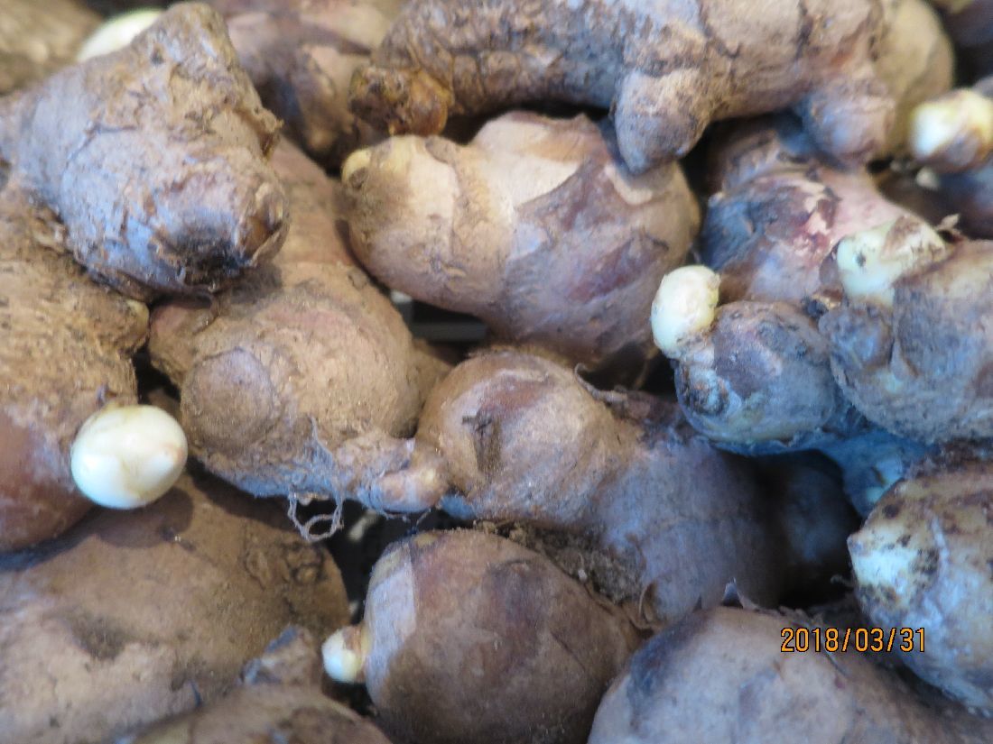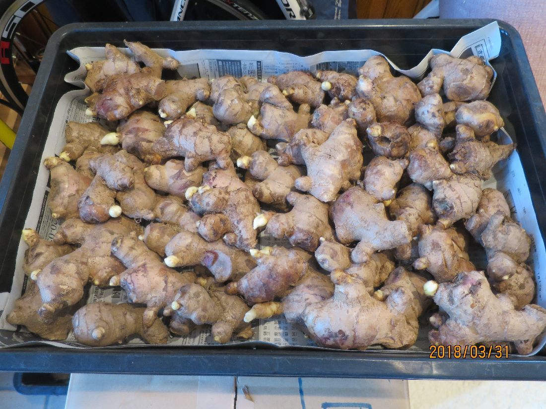玄関が少し空いたので、ショウガの芽出しをやりかけておきます。