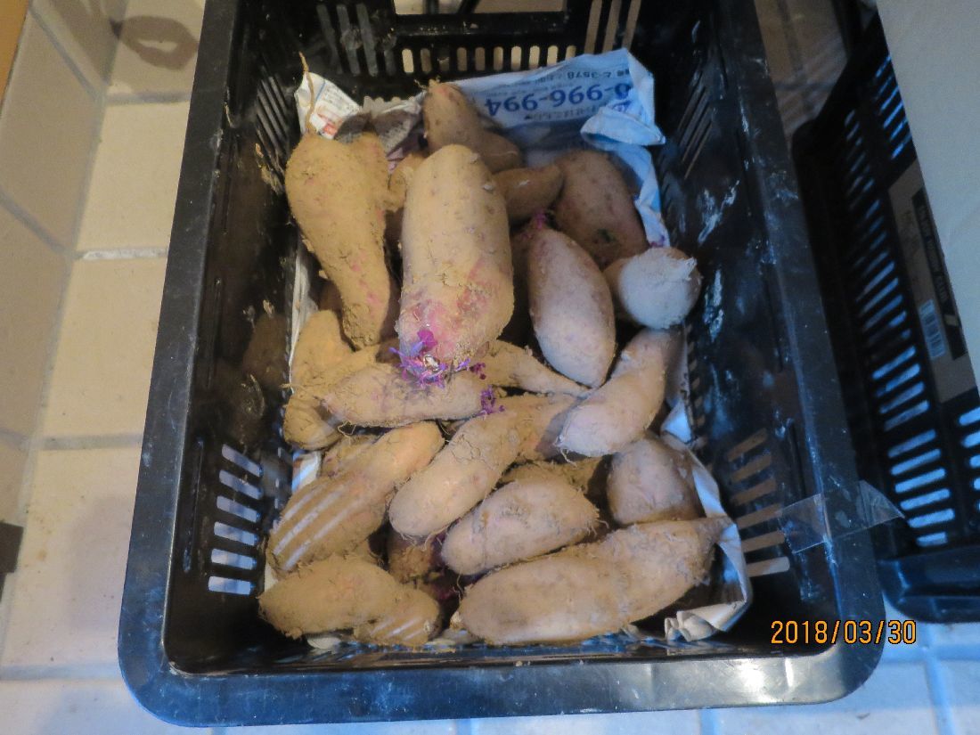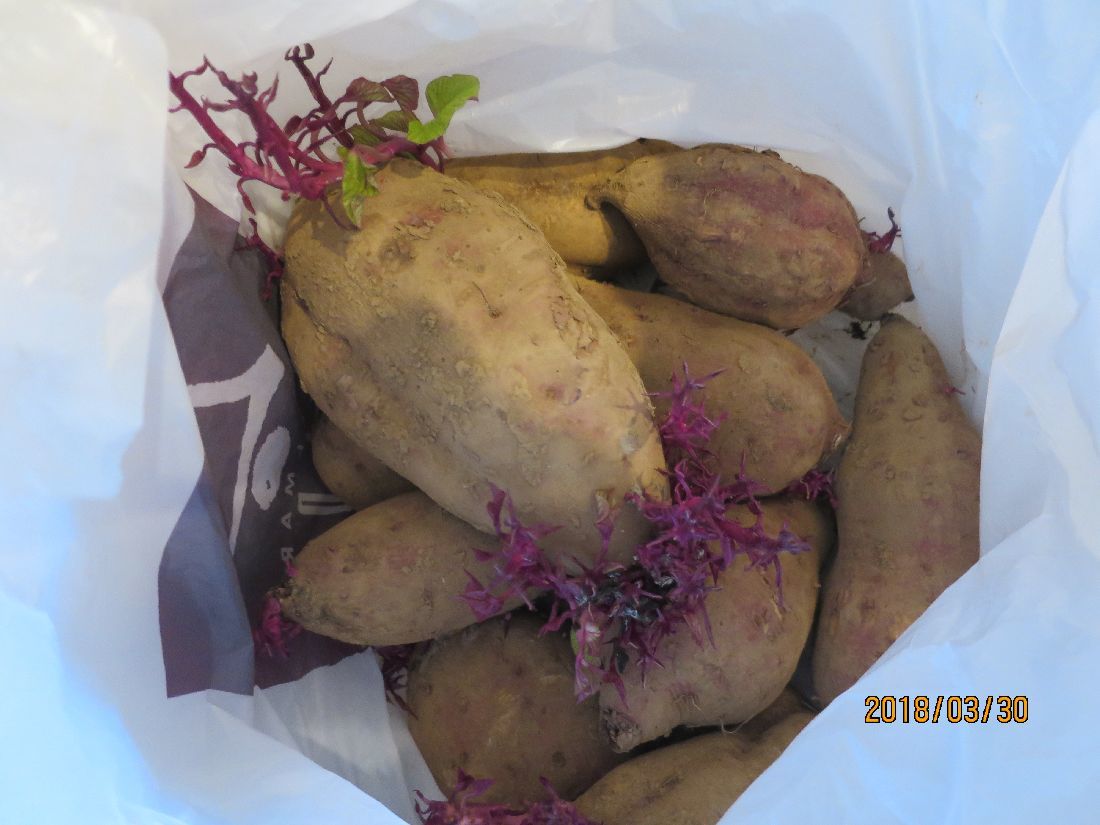 今朝は冷え込んで霜が降りていたそうです。ジャガイモの芽が少し傷んでいました。