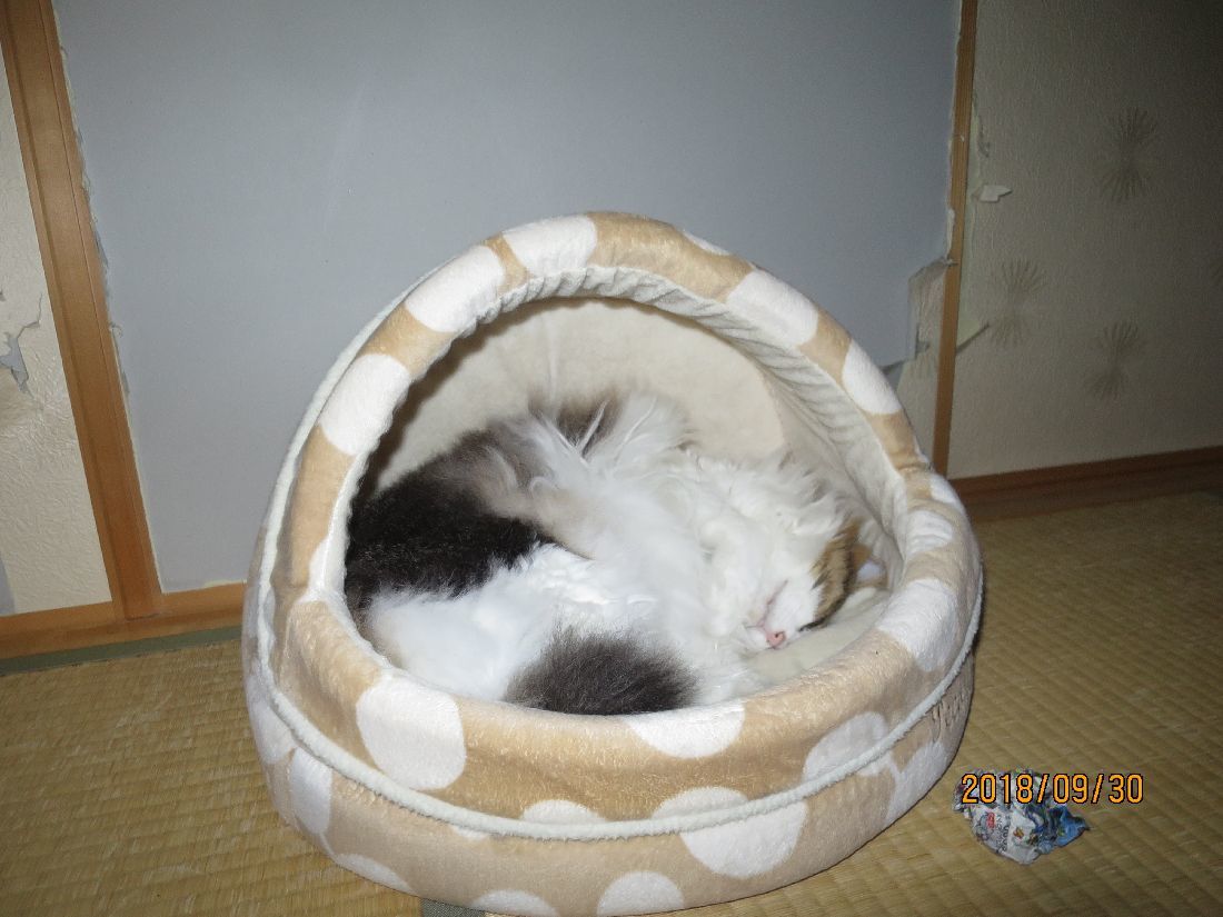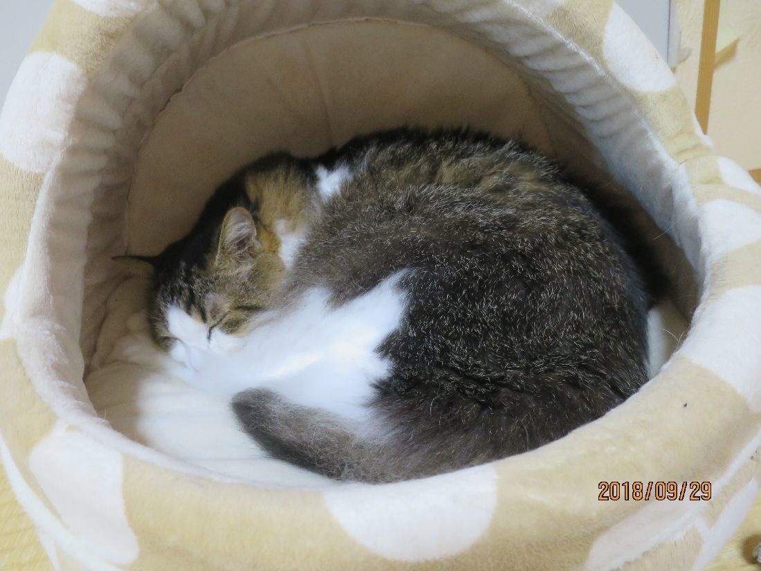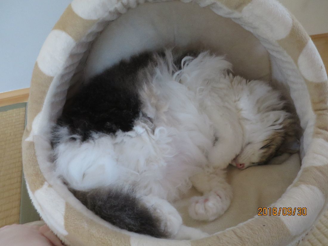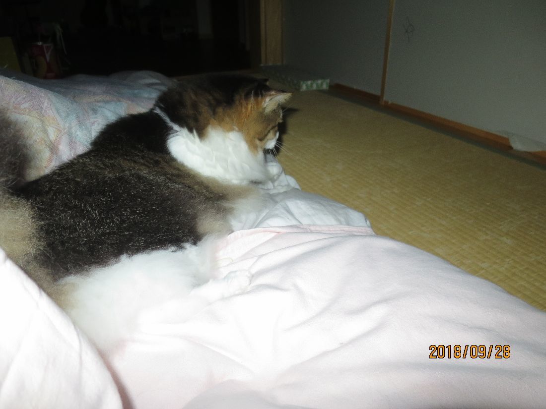 最近は仮眠はココで。夜中にコタツベッドへ移動することが多かったのですが、肌寒かったせいか、ずっと朝までココでした。