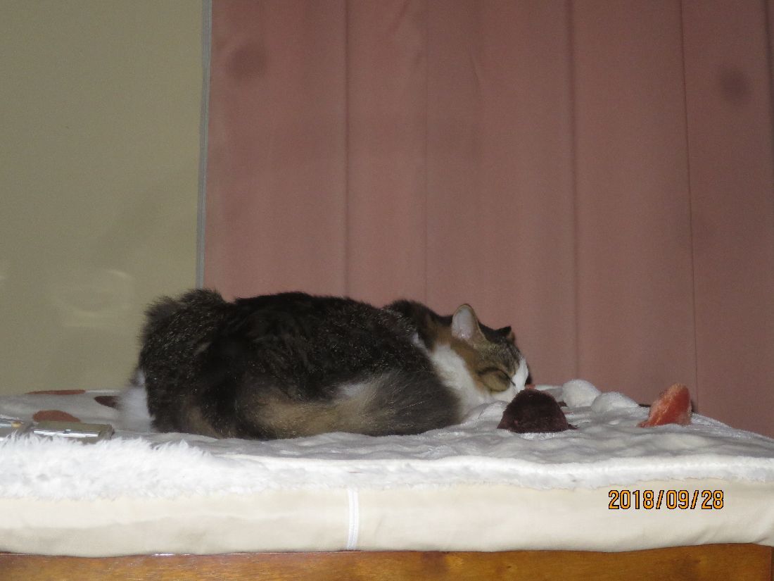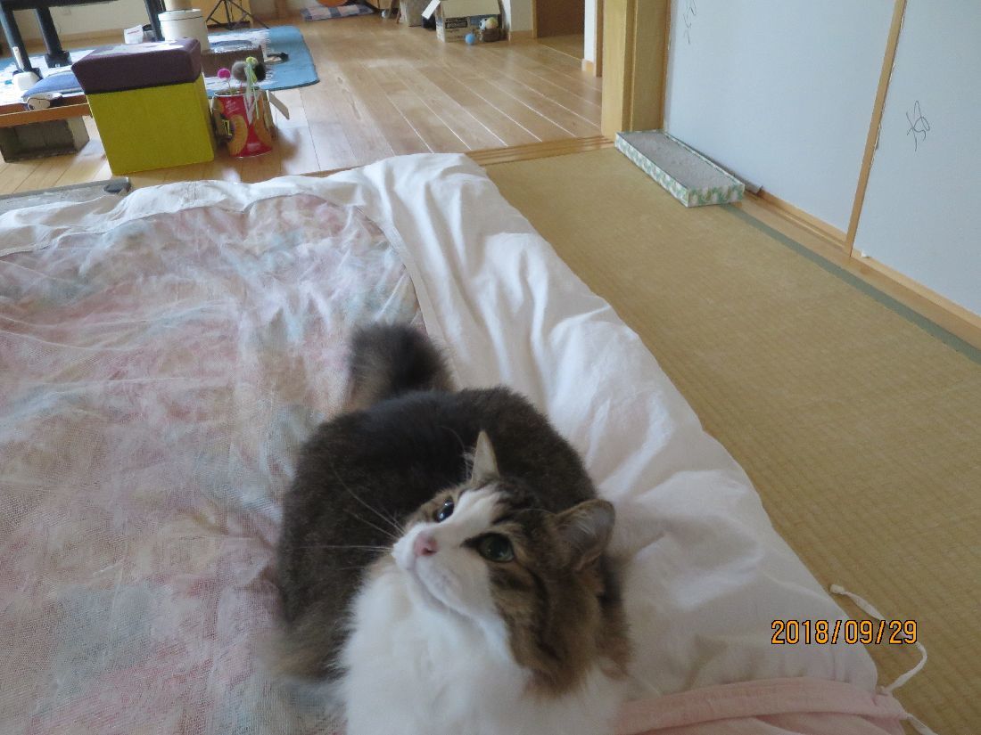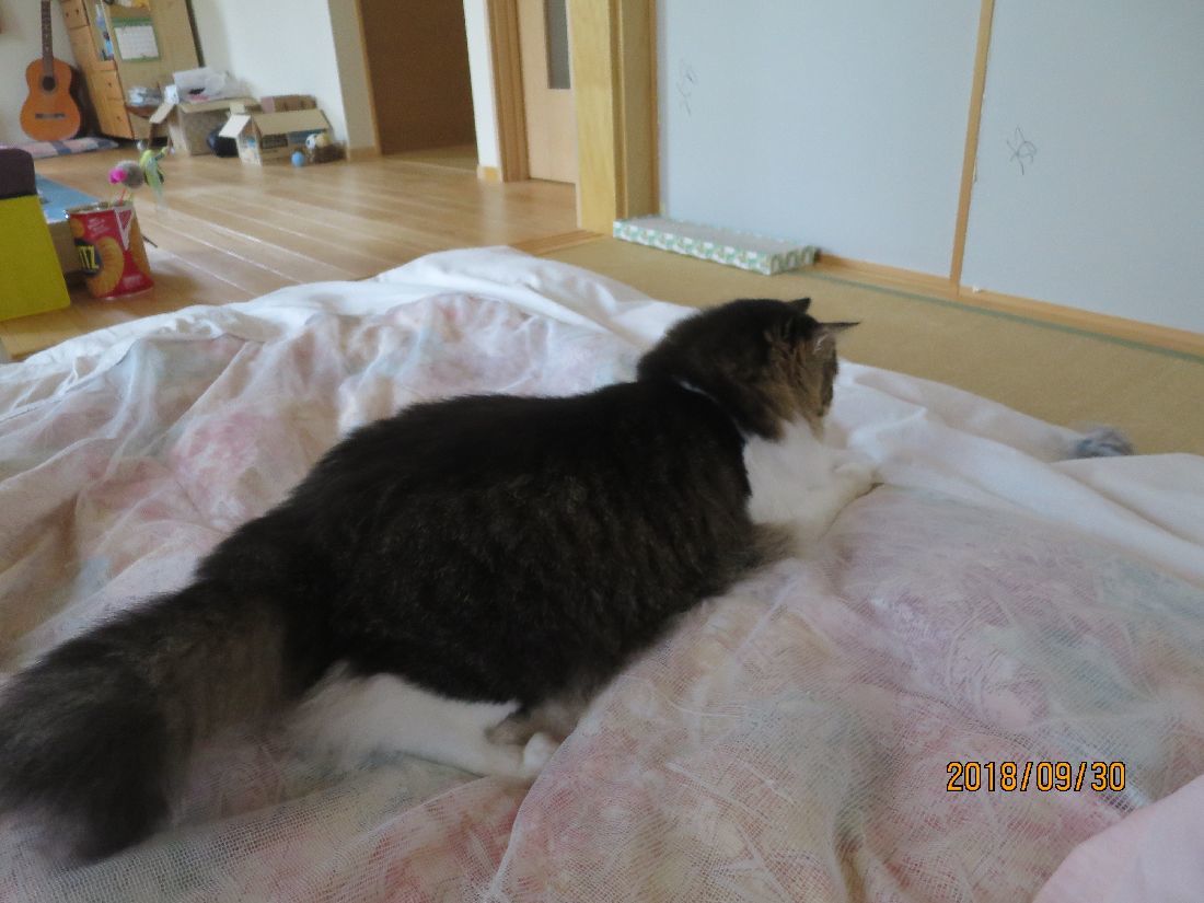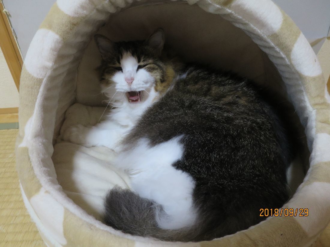 最近は仮眠はココで。夜中にコタツベッドへ移動することが多かったのですが、肌寒かったせいか、ずっと朝までココでした。