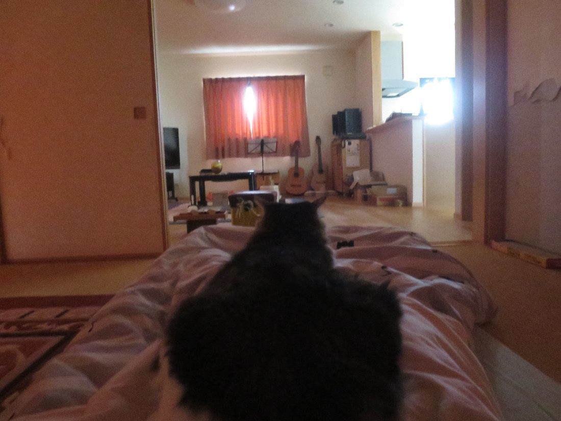 カーテンを開け、ふうちゃんのトイレ掃除をして寝直しです。