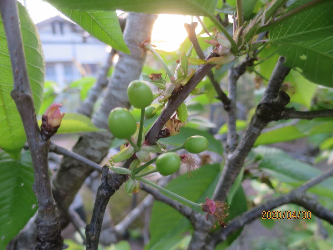 サクランボ「さおり」は着果したみたいに見えます。