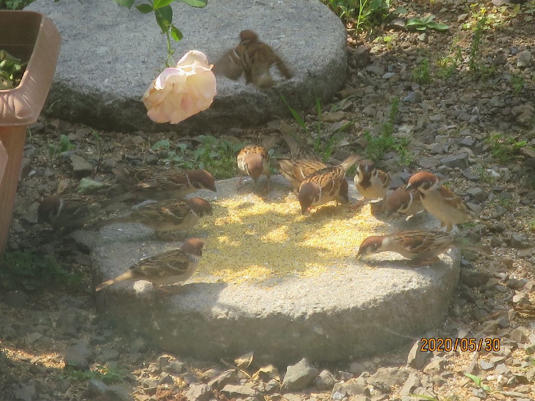 ヒヨドリが来ているようで糞が落ちています。