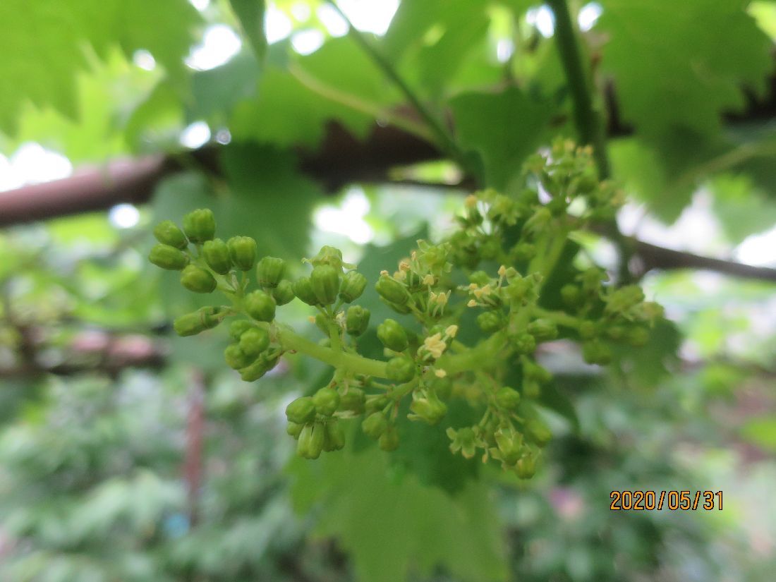 ブドウ「藤稔」の開花が始まりました。