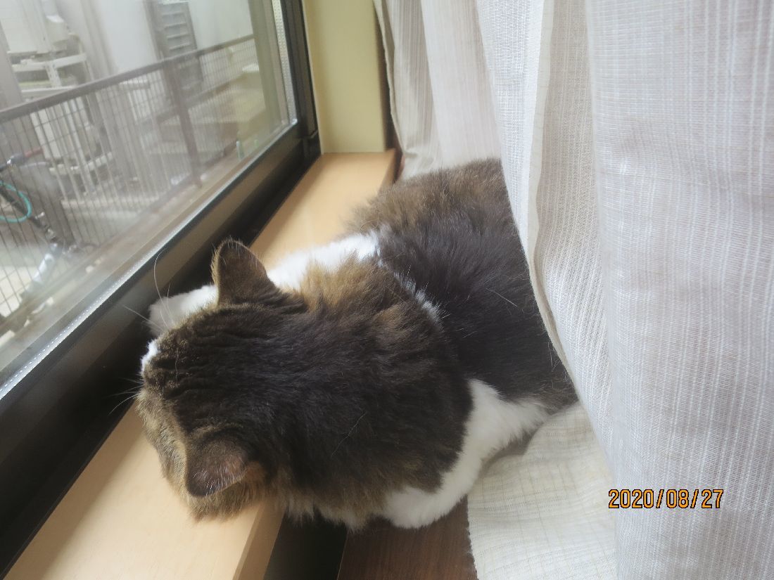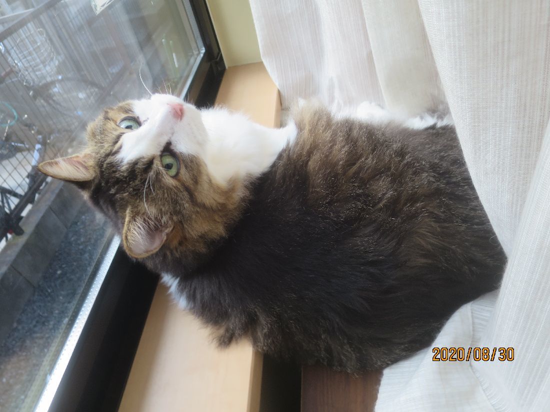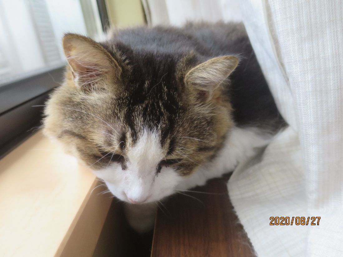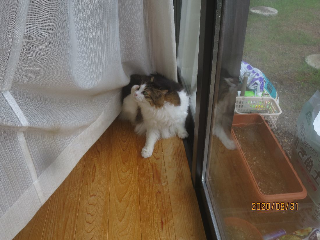 帰宅すると、カーテンの陰にふうちゃん。
