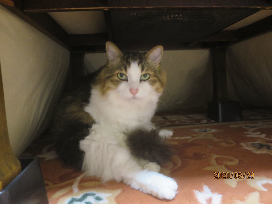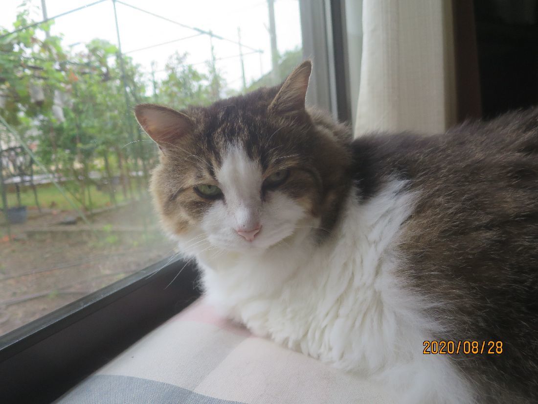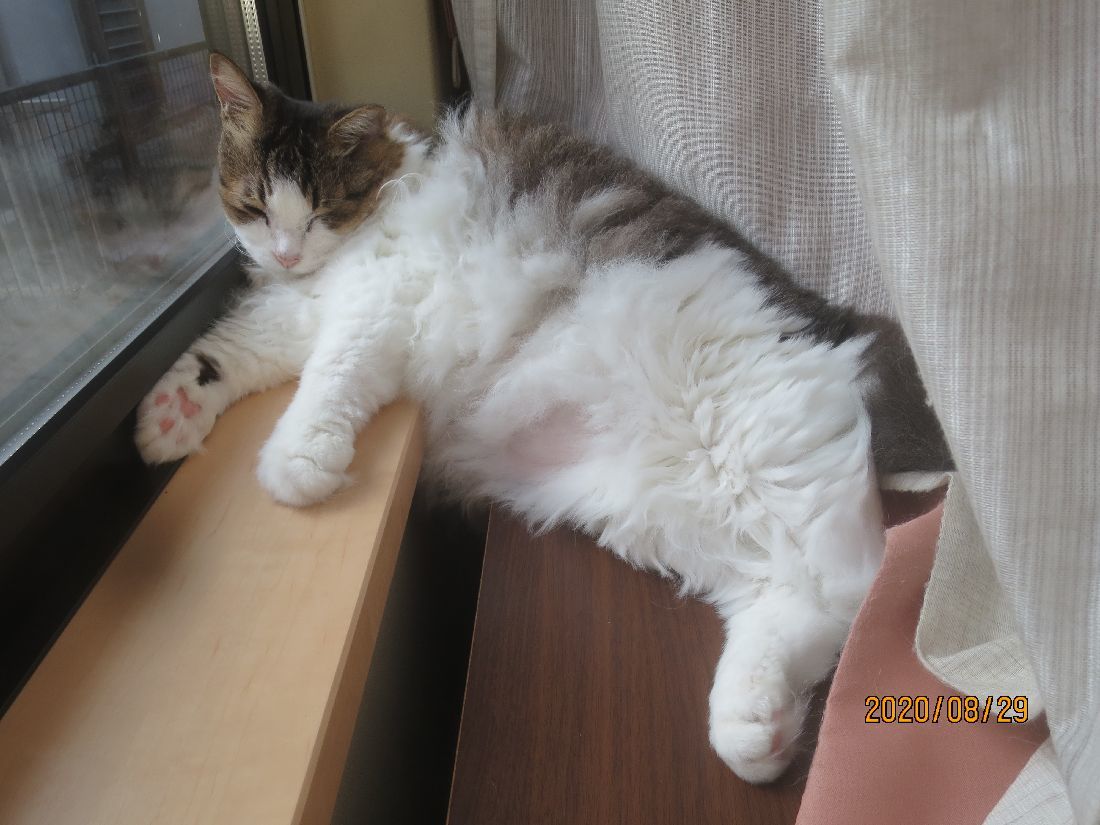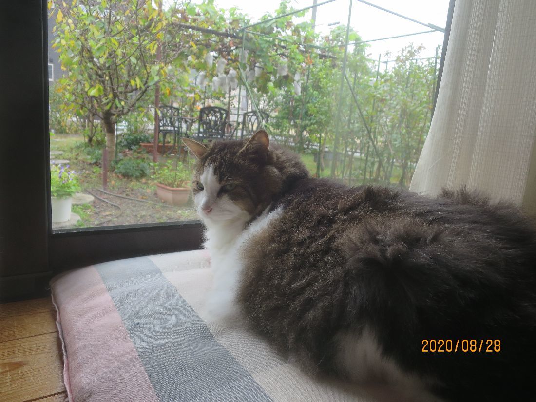 帰宅すると、カーテンの陰にふうちゃん。