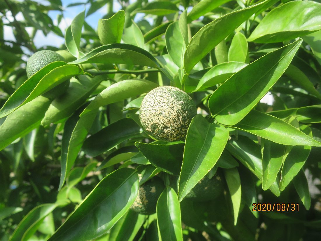 スダチは干からびて葉が巻いています。