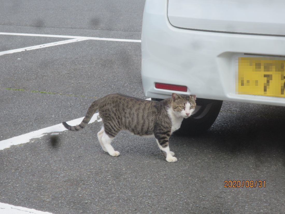 スーパーの駐車場に猫さんがいました。