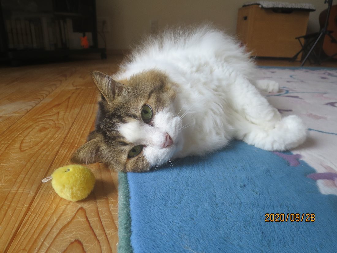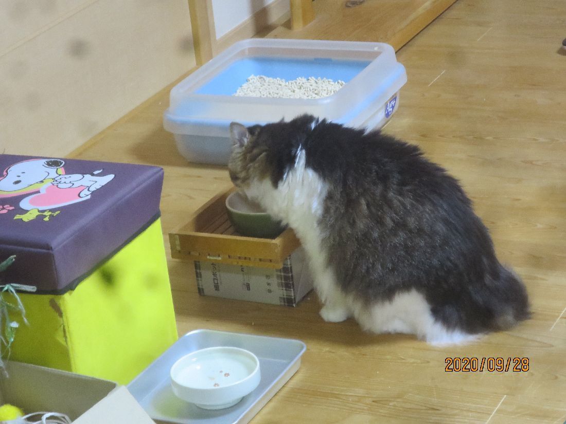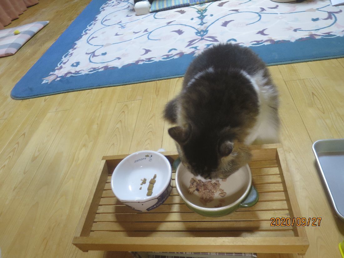 帰宅してふうちゃんに晩ゴハン。まるは醬油ラーメンにしました。