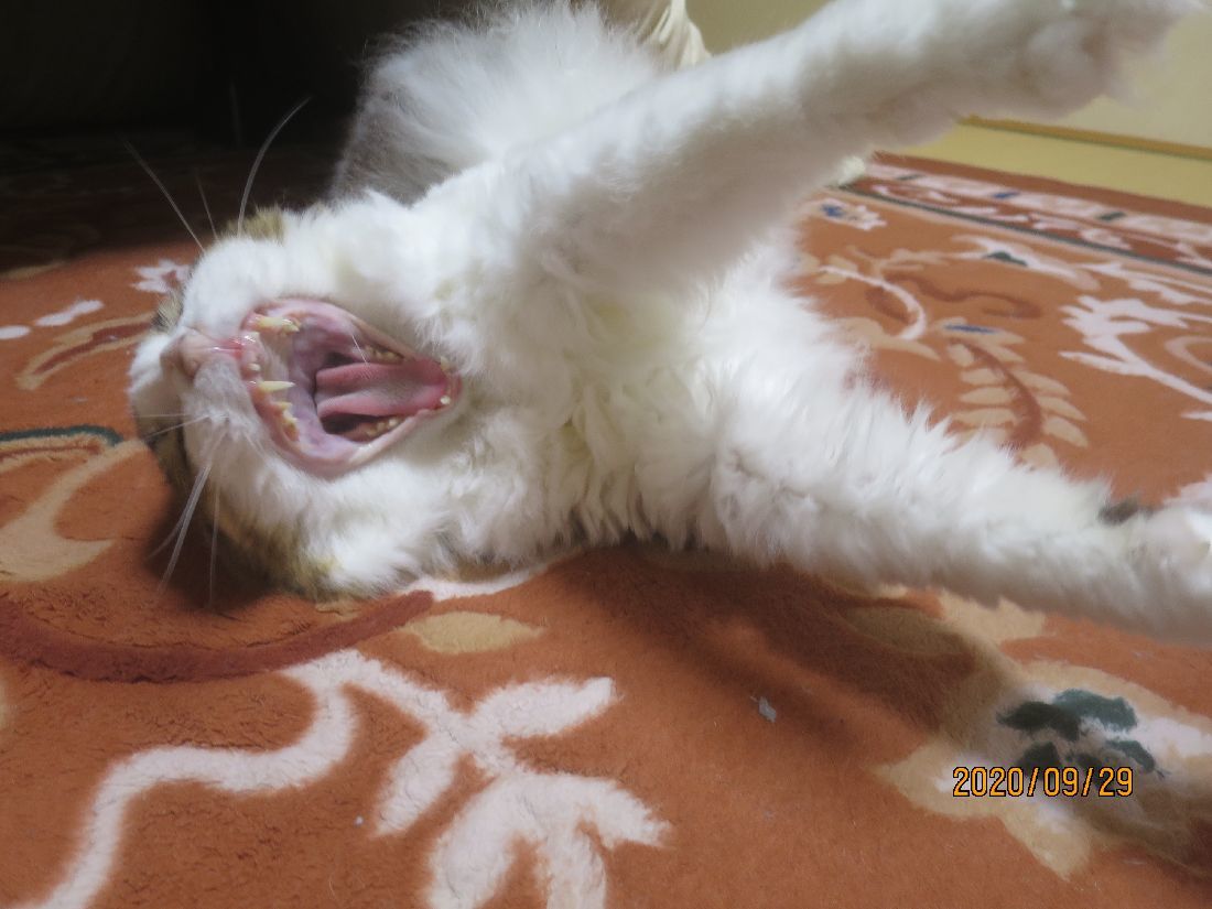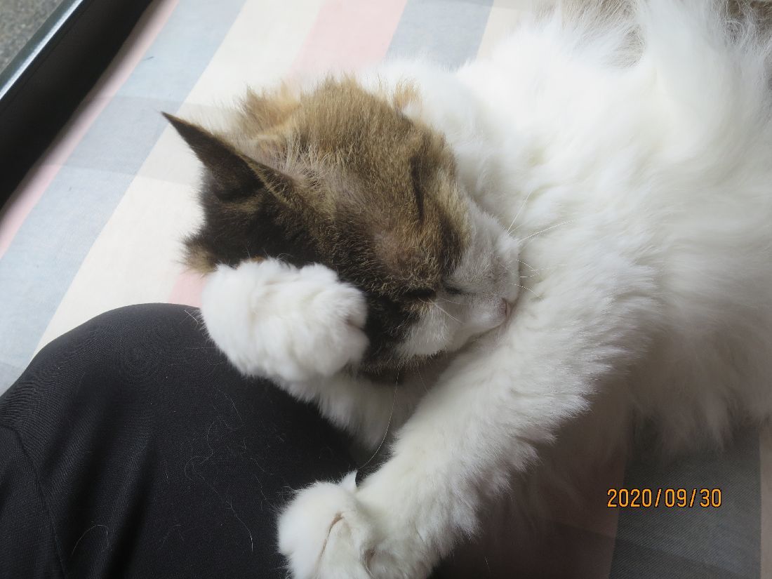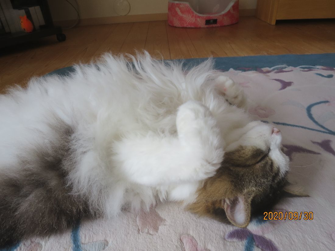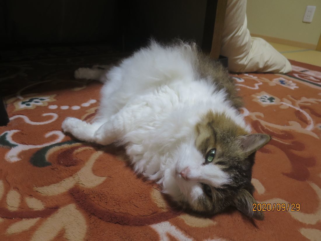 帰宅してふうちゃんに晩ゴハン。まるは醬油ラーメンにしました。