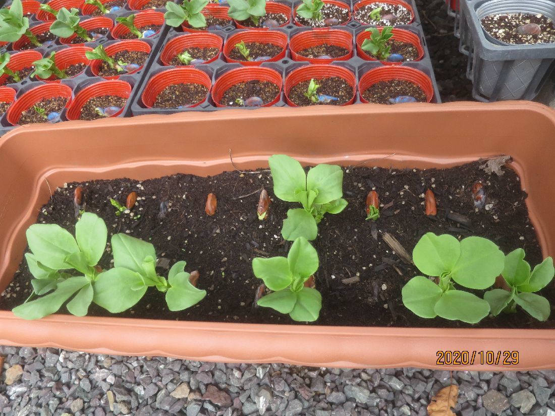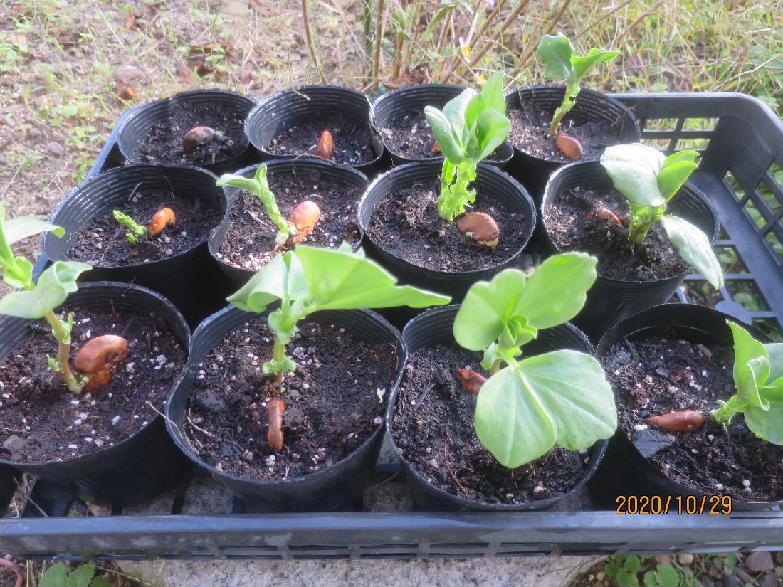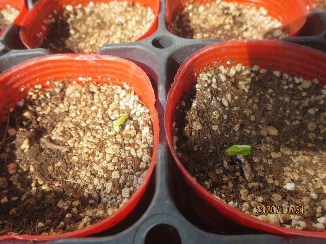 10月24日に播いたエンドウ(ウスイ)の発芽が始まりました。