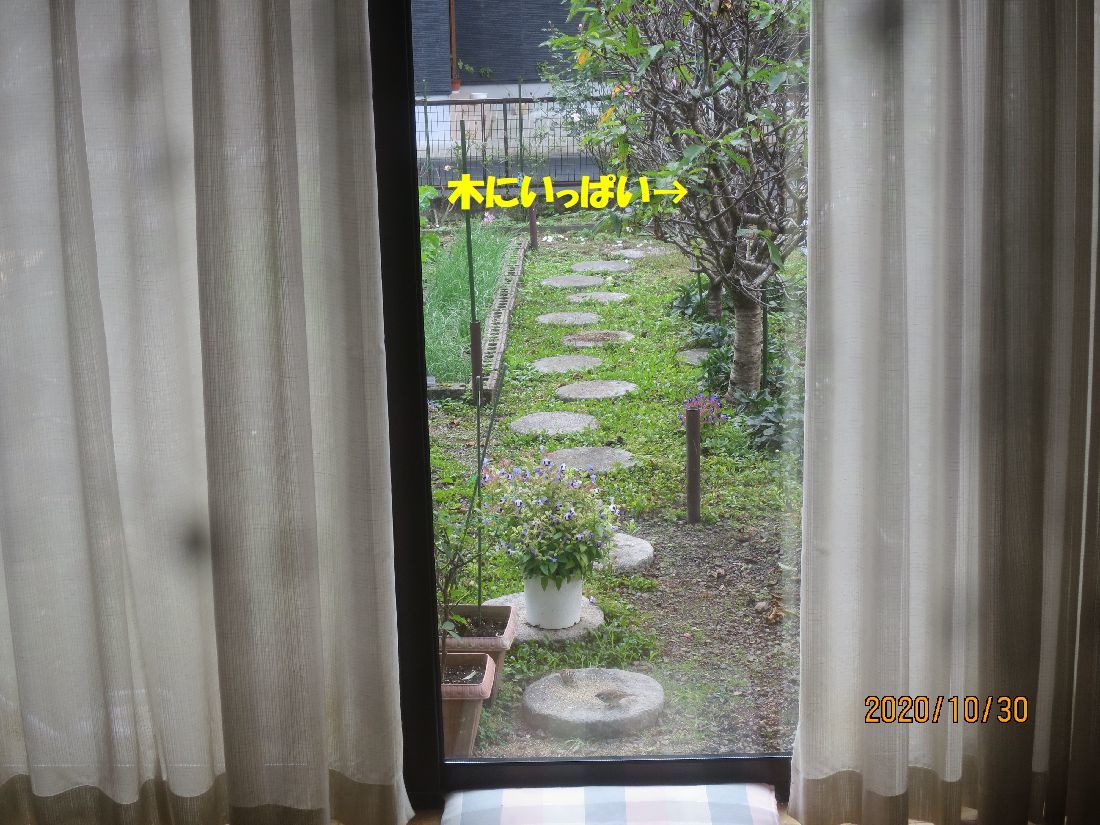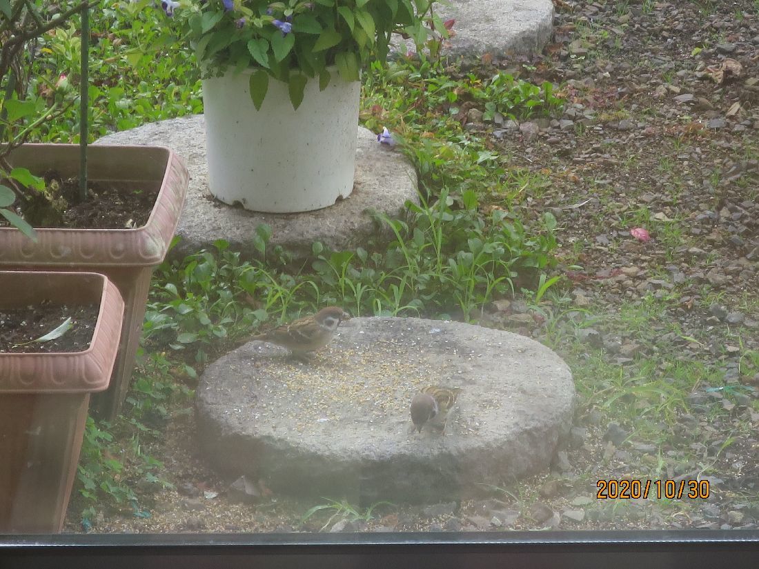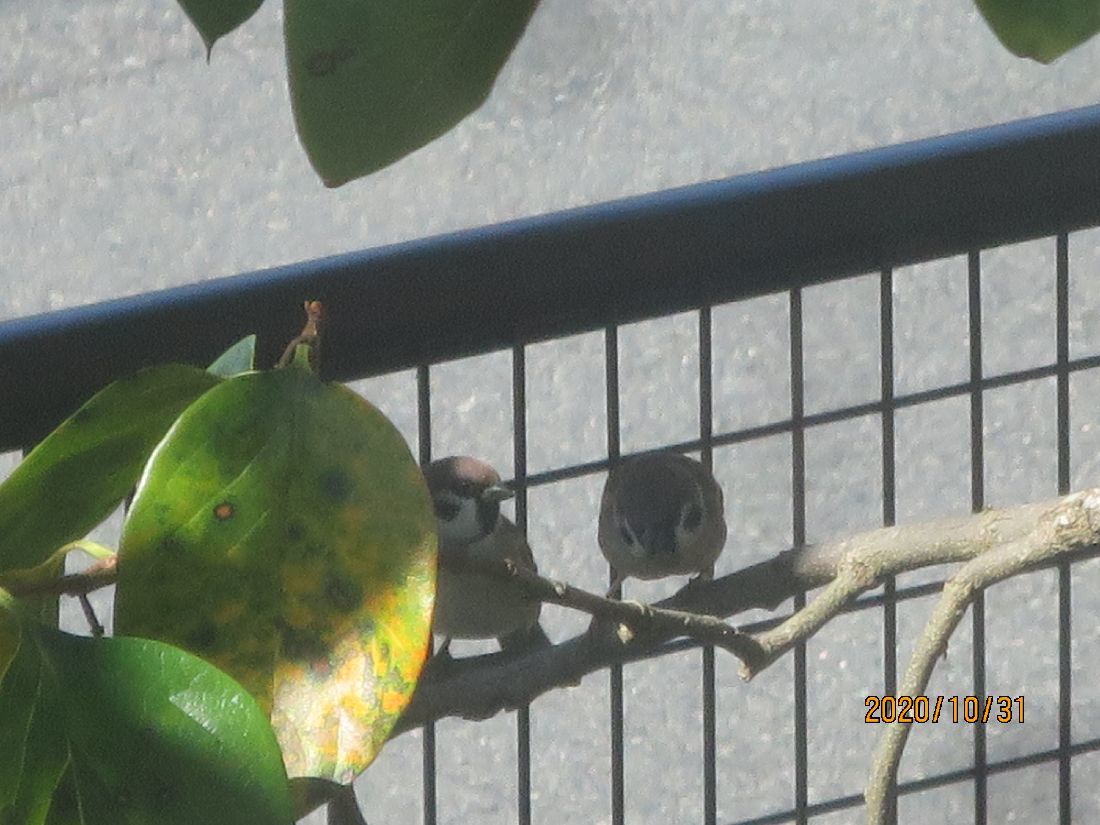 柿の木にスズメが来ています。