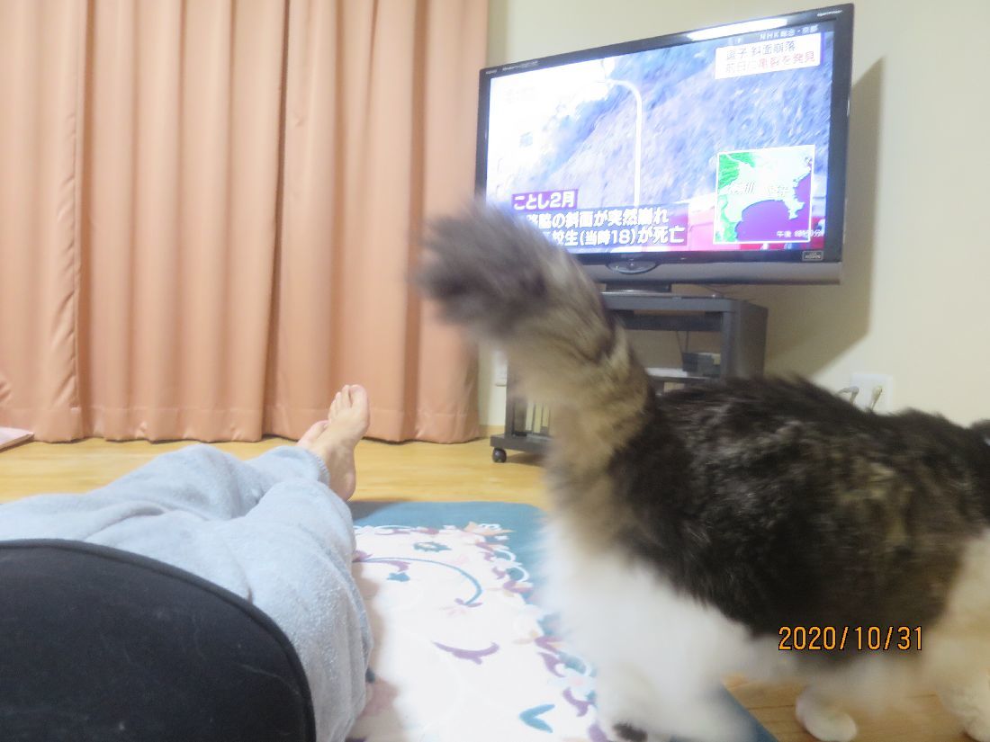 あ、お腹に乗ったと思ったら踏み越えていきました。
