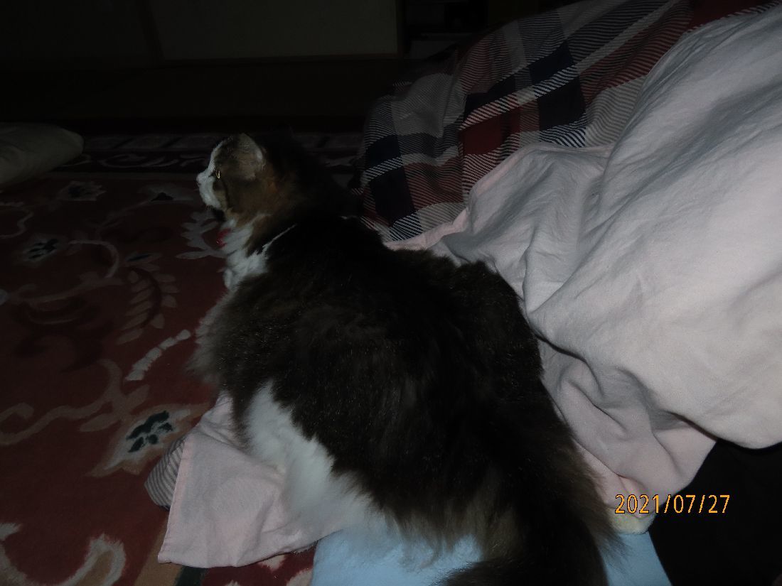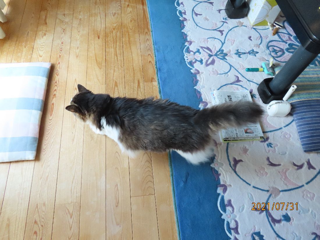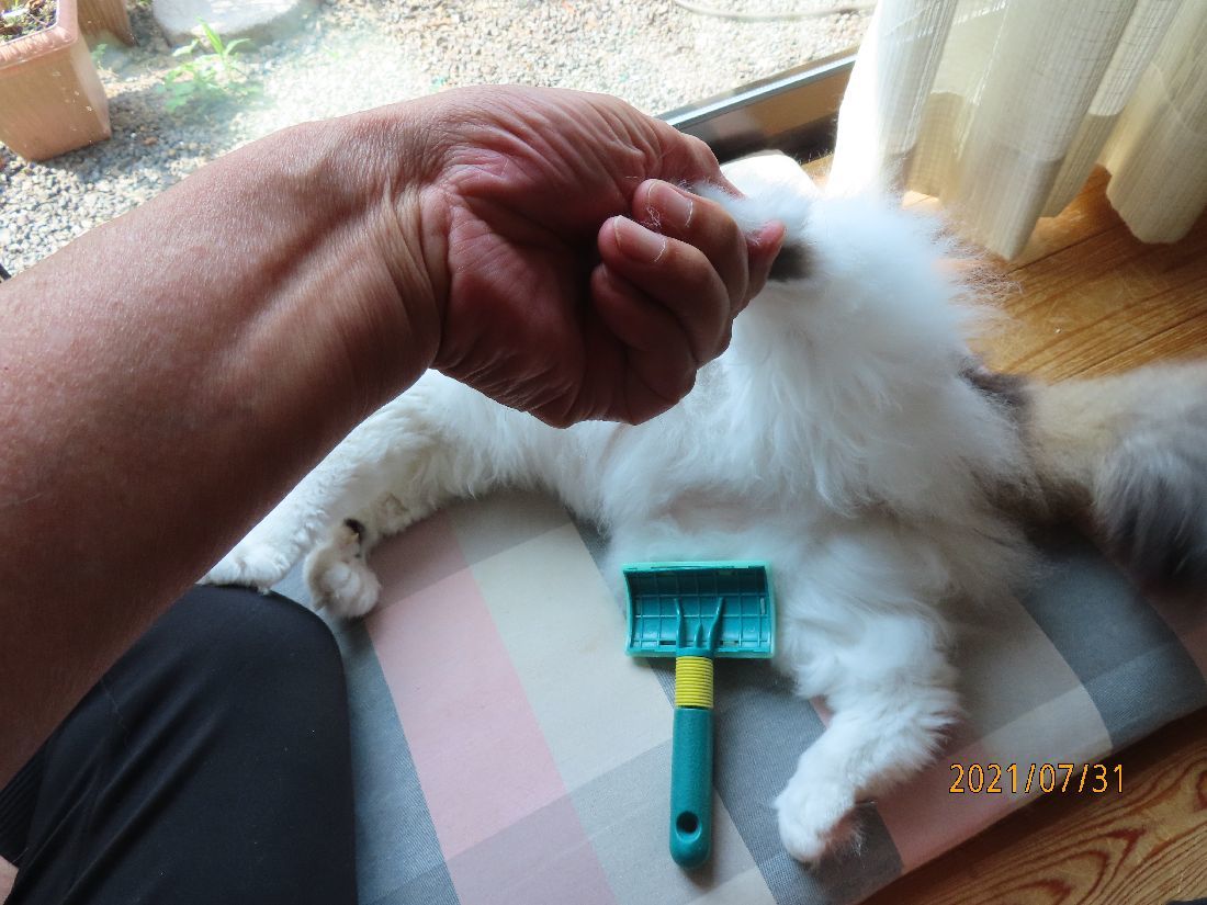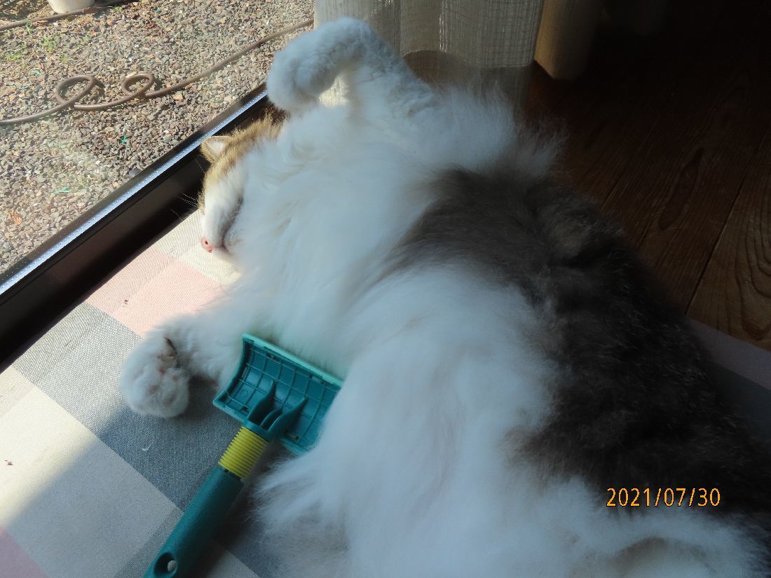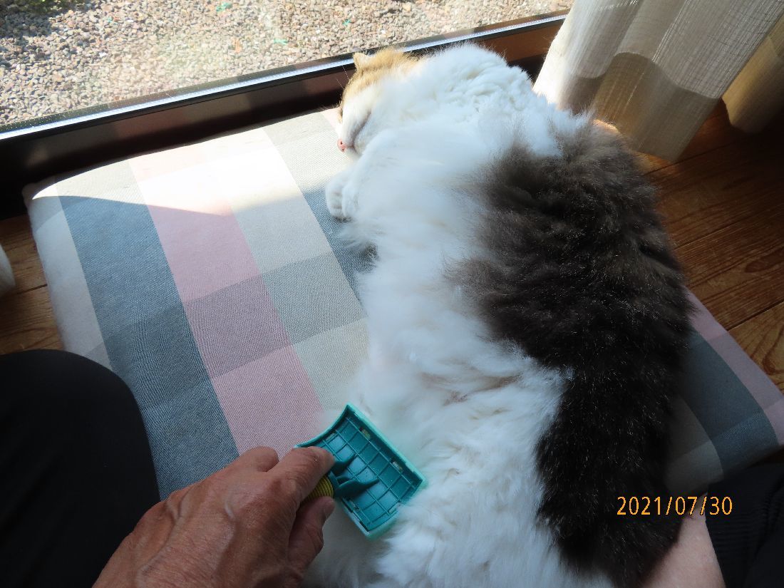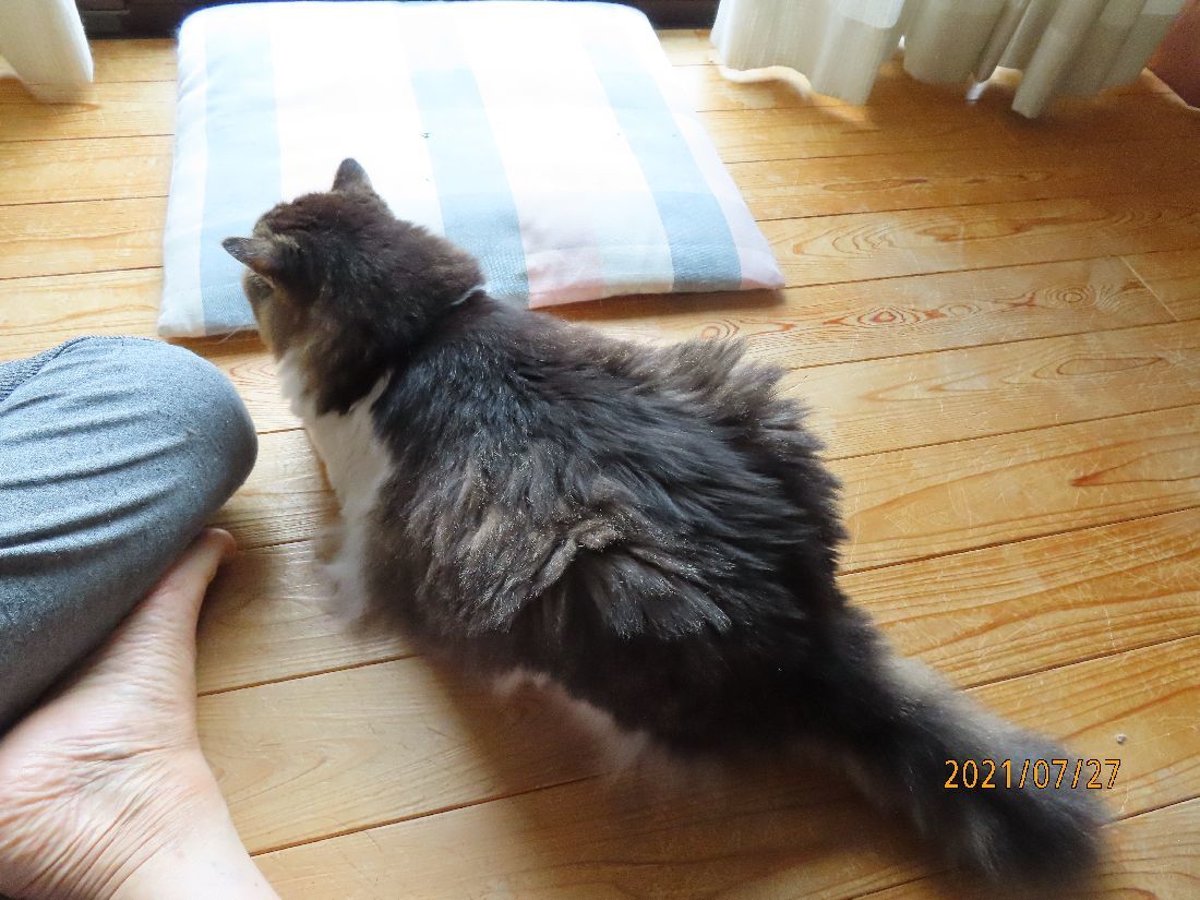 ブラッシングが済むとカーテンの陰から外を見ています。