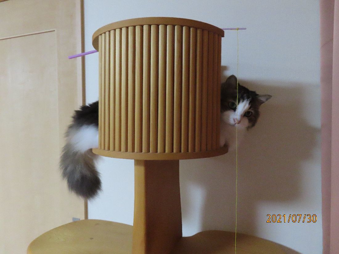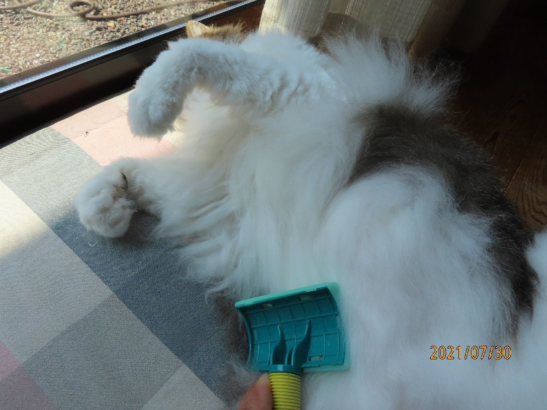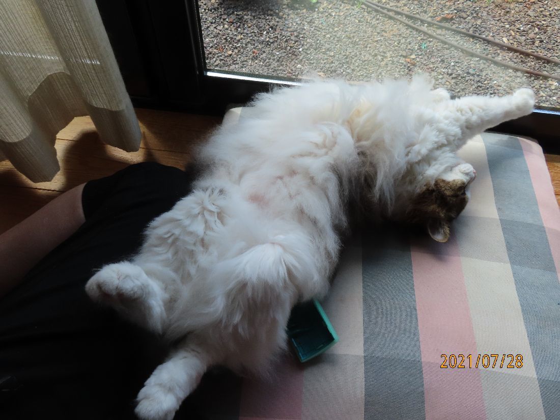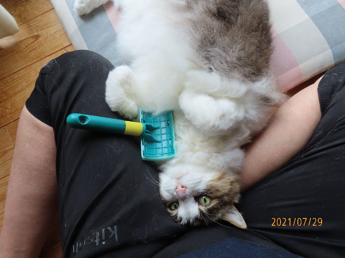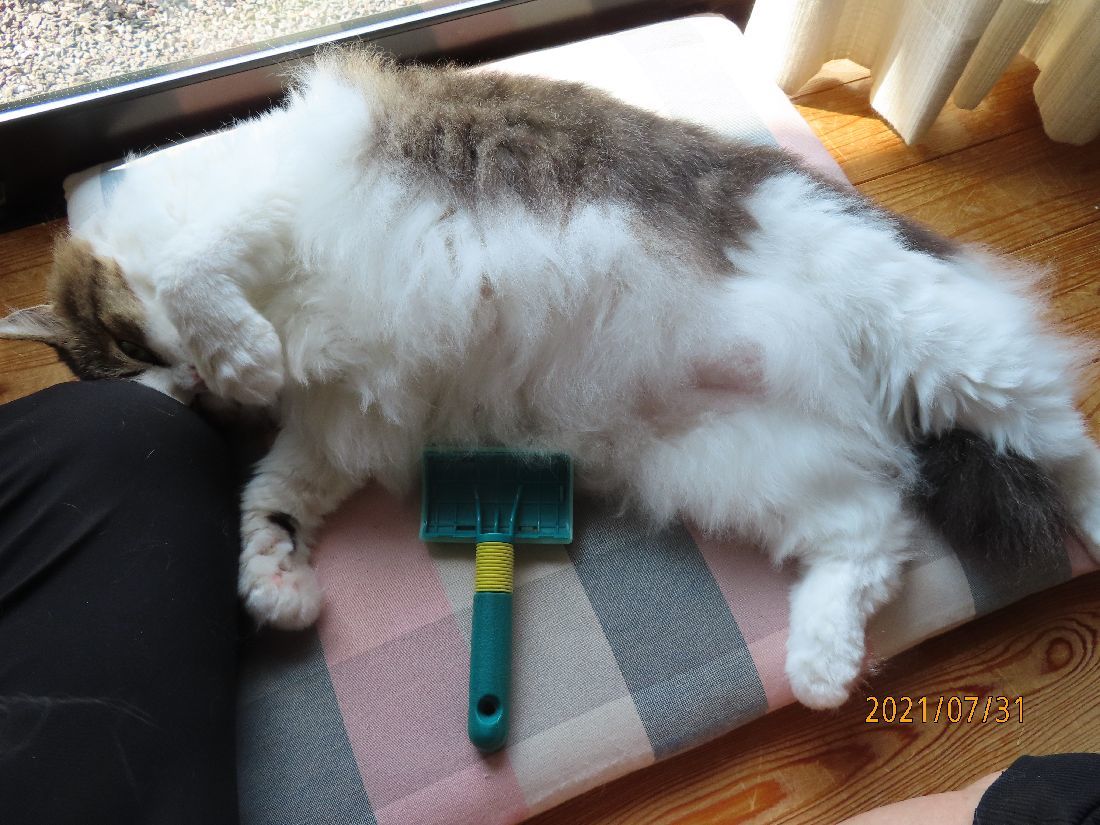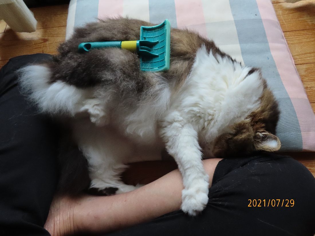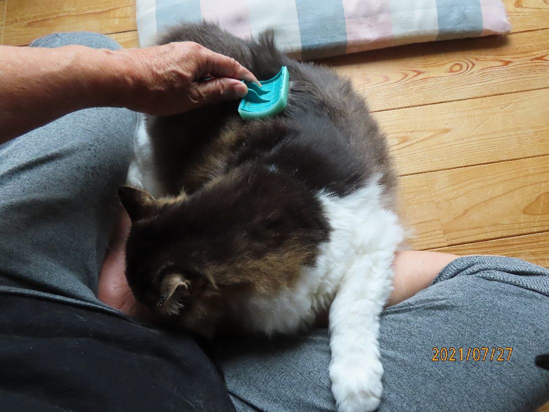 ブラッシングが済むとカーテンの陰から外を見ています。