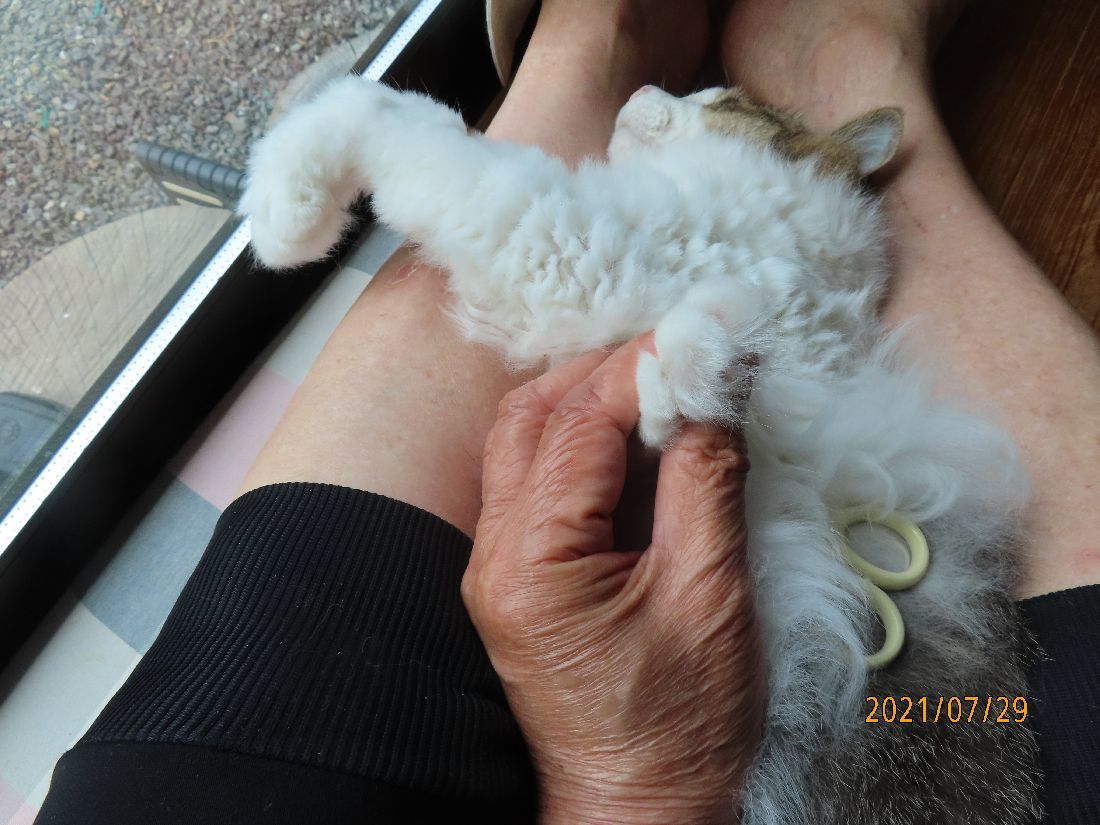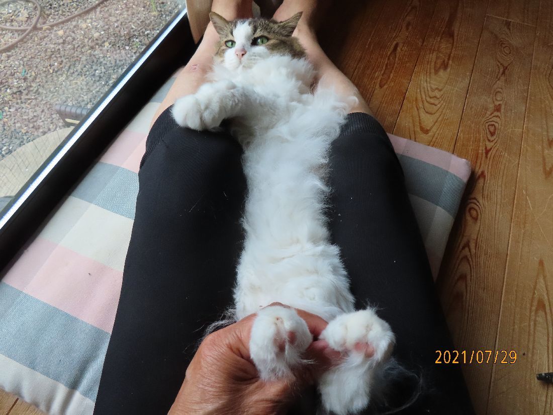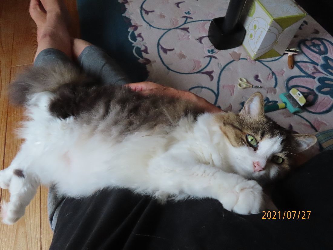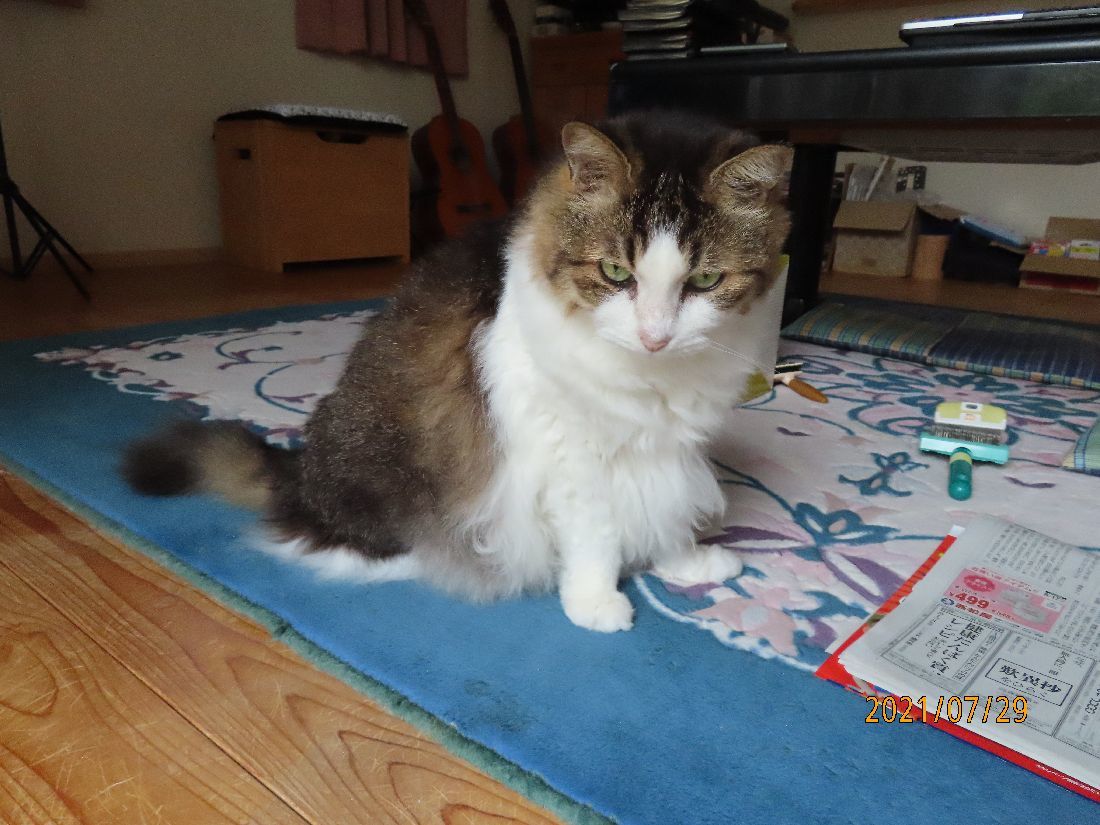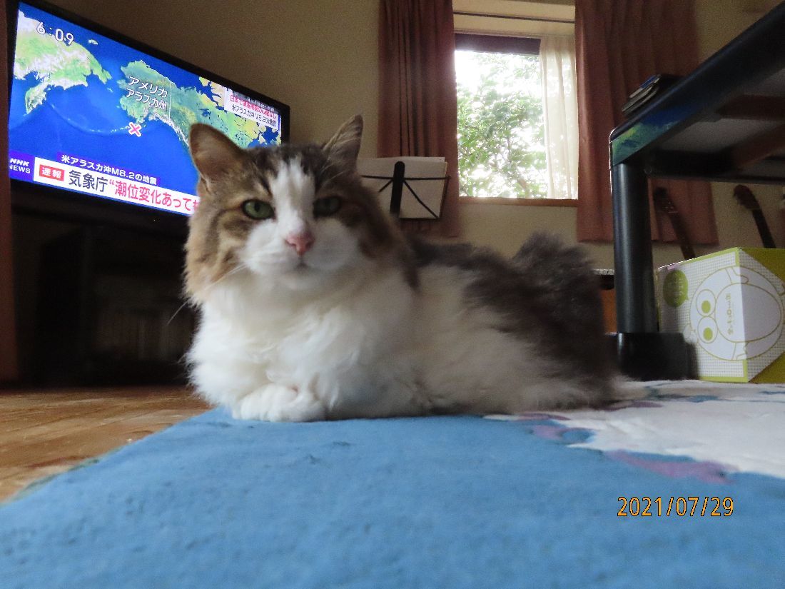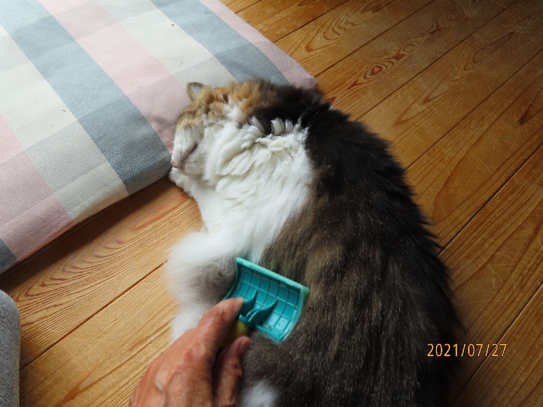 ブラッシングが済むとカーテンの陰から外を見ています。