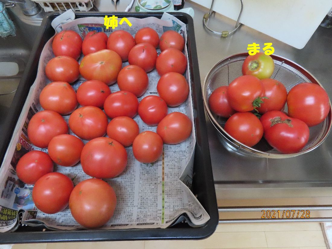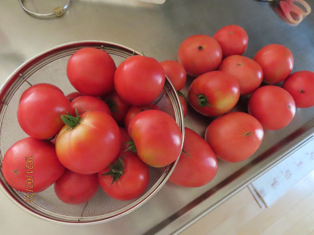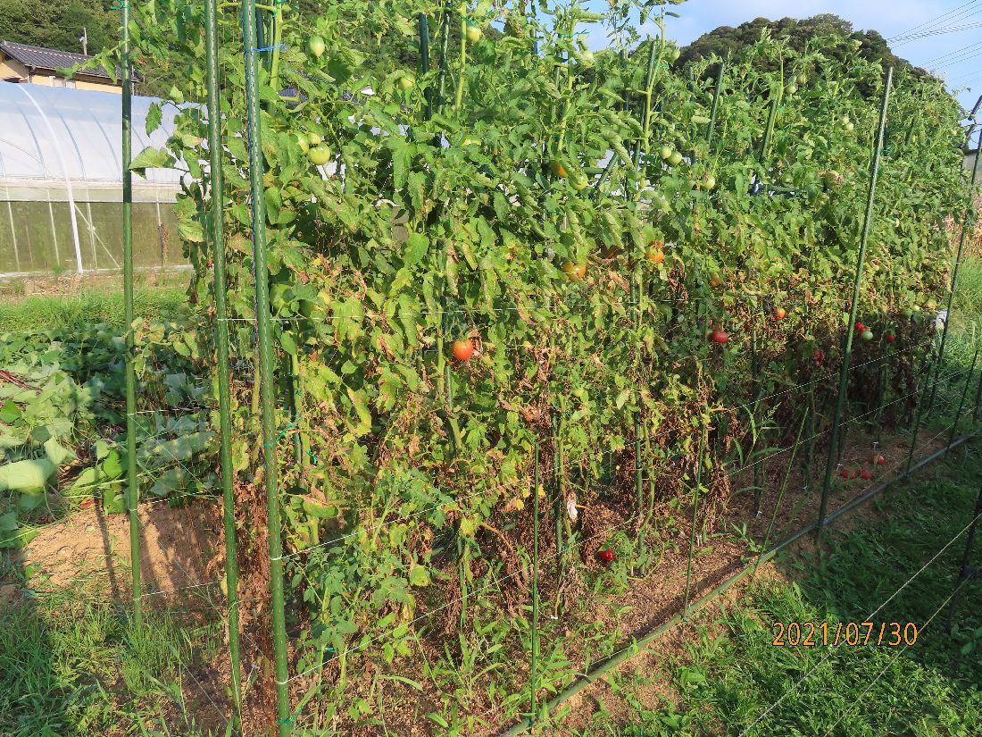 彼のトマトは今年は建物の北側の畑だったせいか低調だったようです。