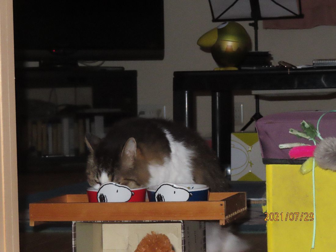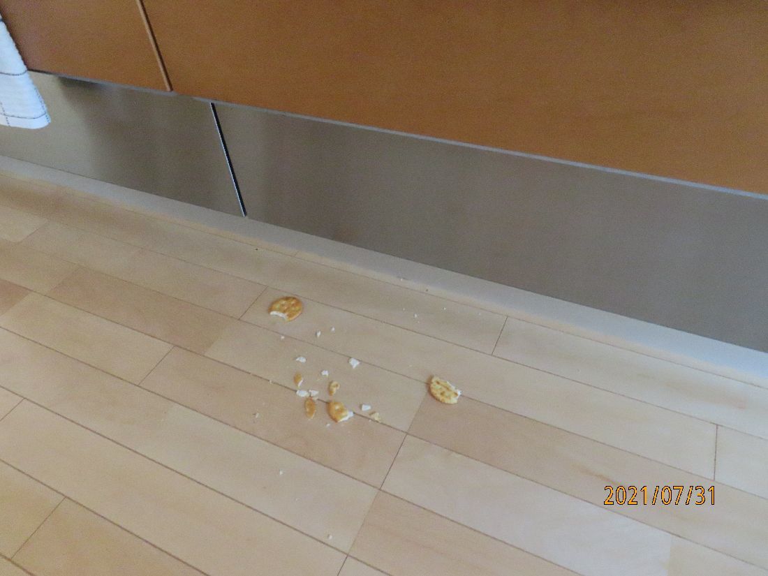 キッチンへ行くと・・・あ、リッツクラッカーが落ちています。