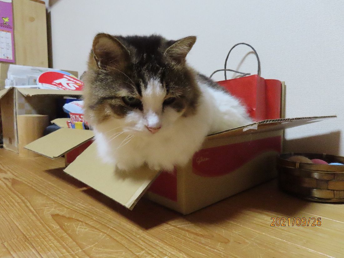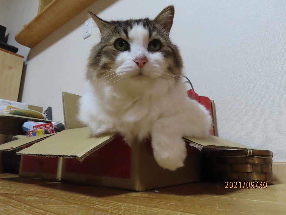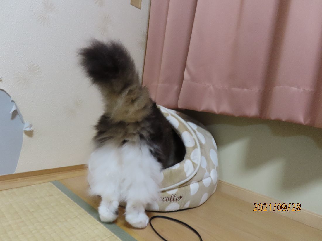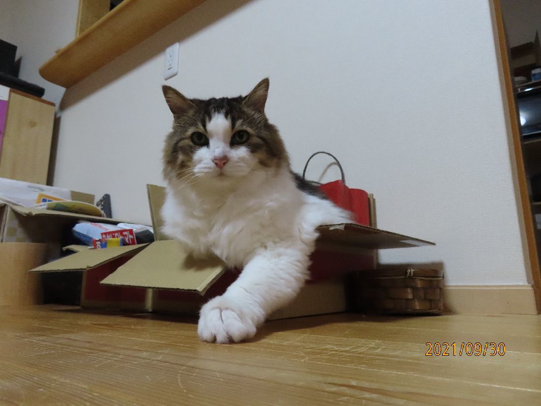 おやすみ前にトイレでした。掃除中に箱入りです。