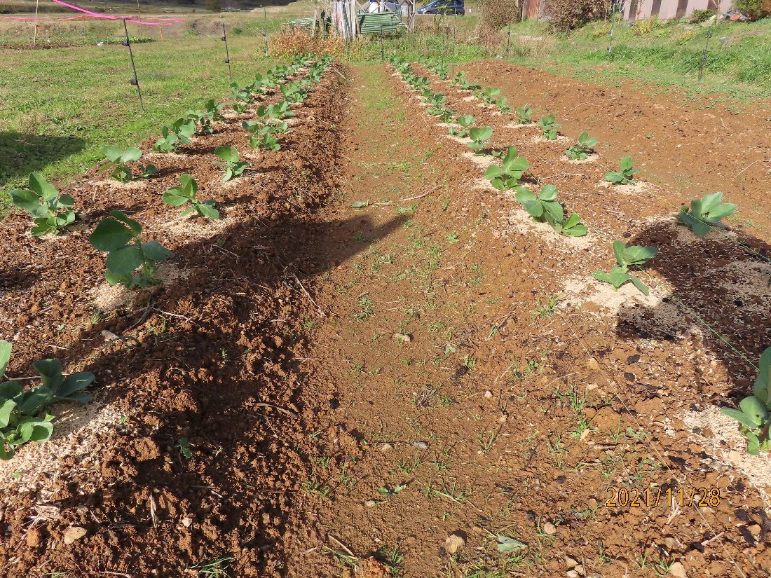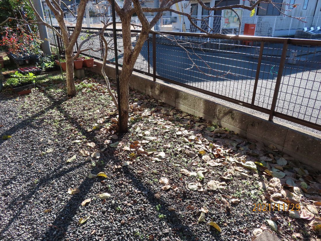 柿の落ち葉がまだ残っていたので片付けまして、フェンス際にクリスマスローズの苗を植えました。