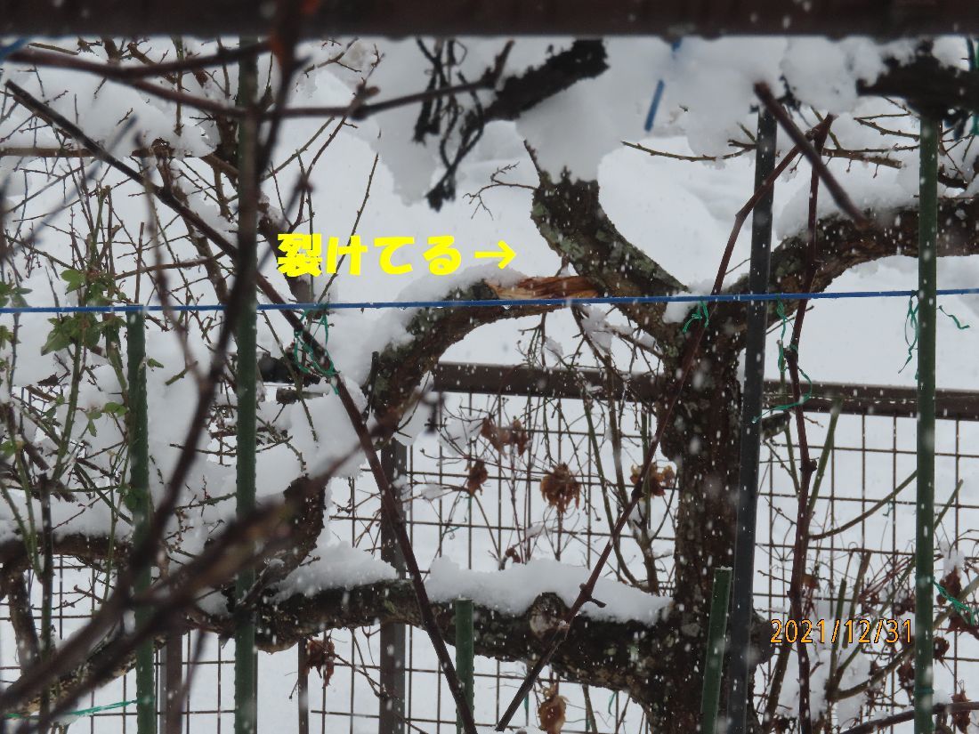 先日の大雪で南高梅の太枝が裂けてしまっています。