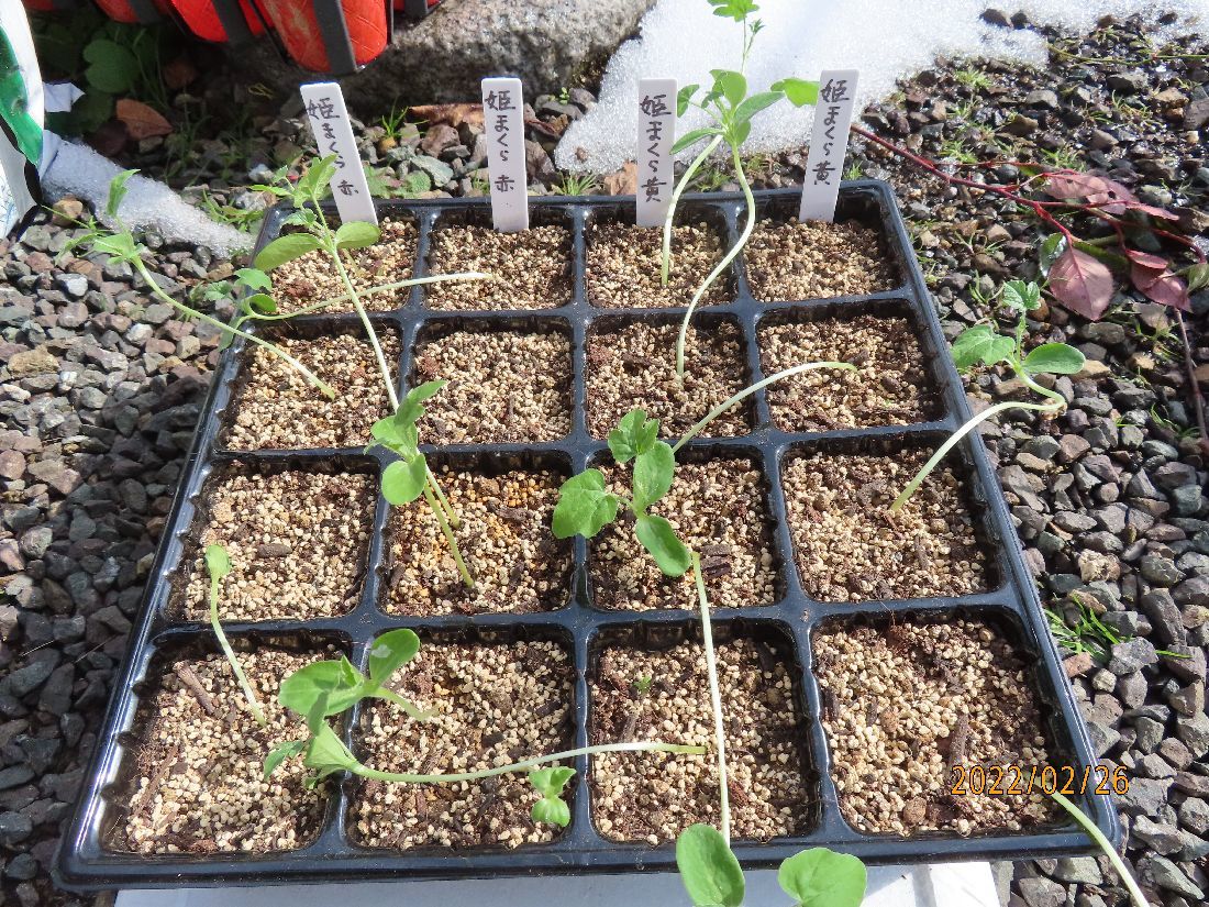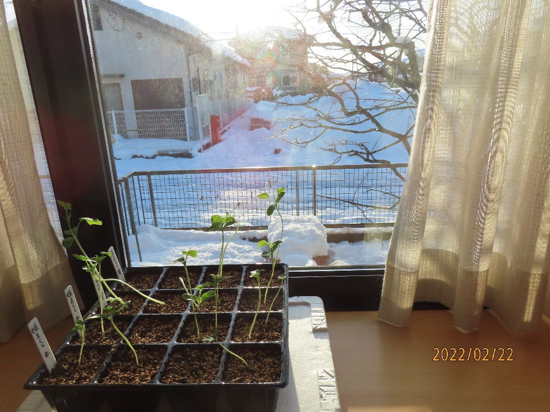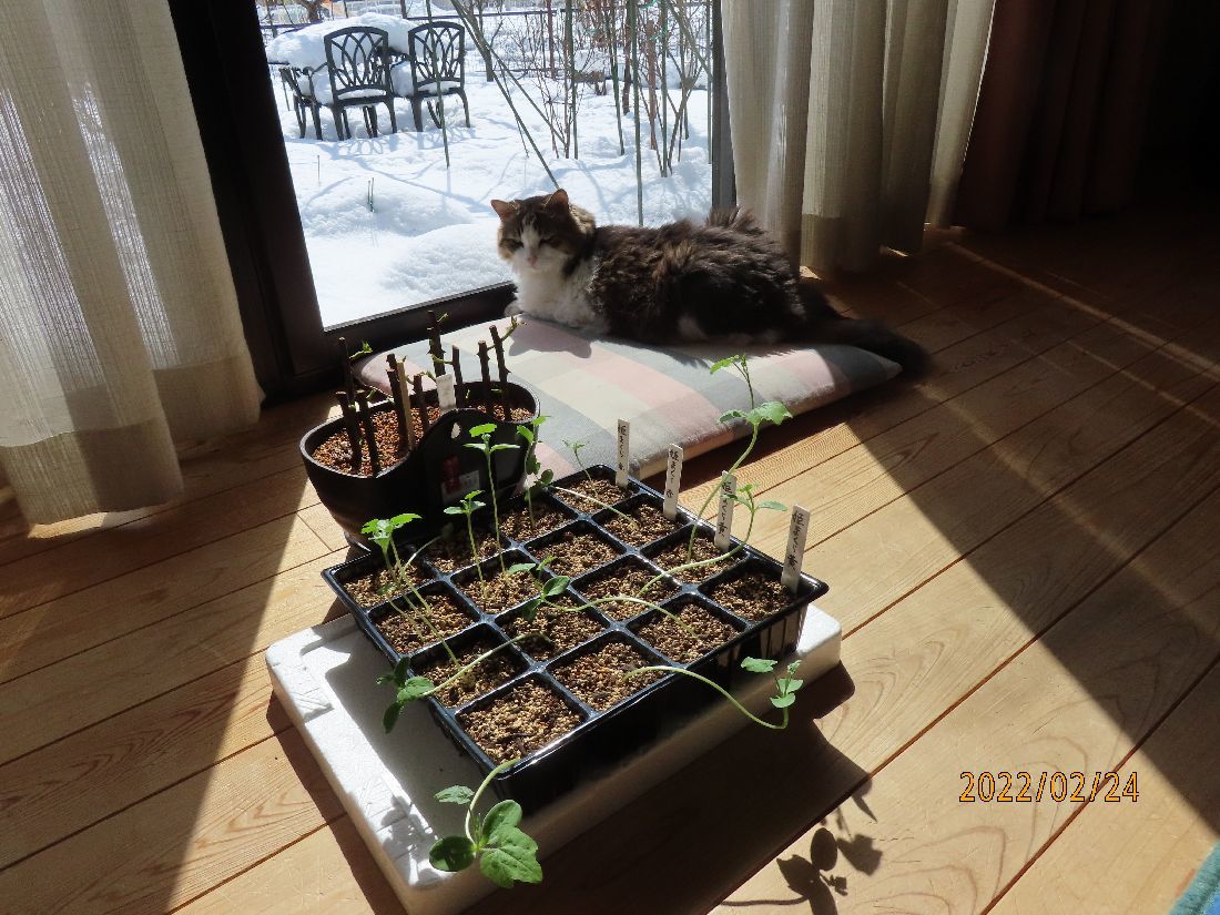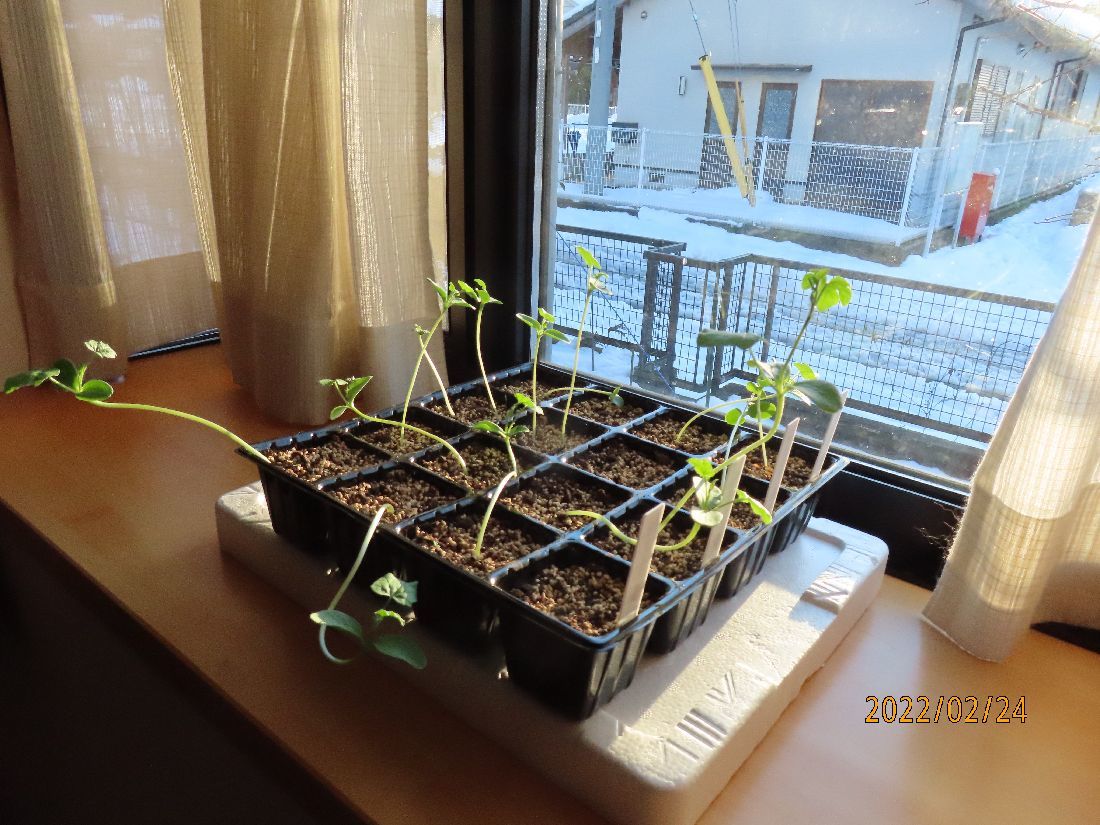 トレーのスイカ苗はヒョロヒョロのままです。