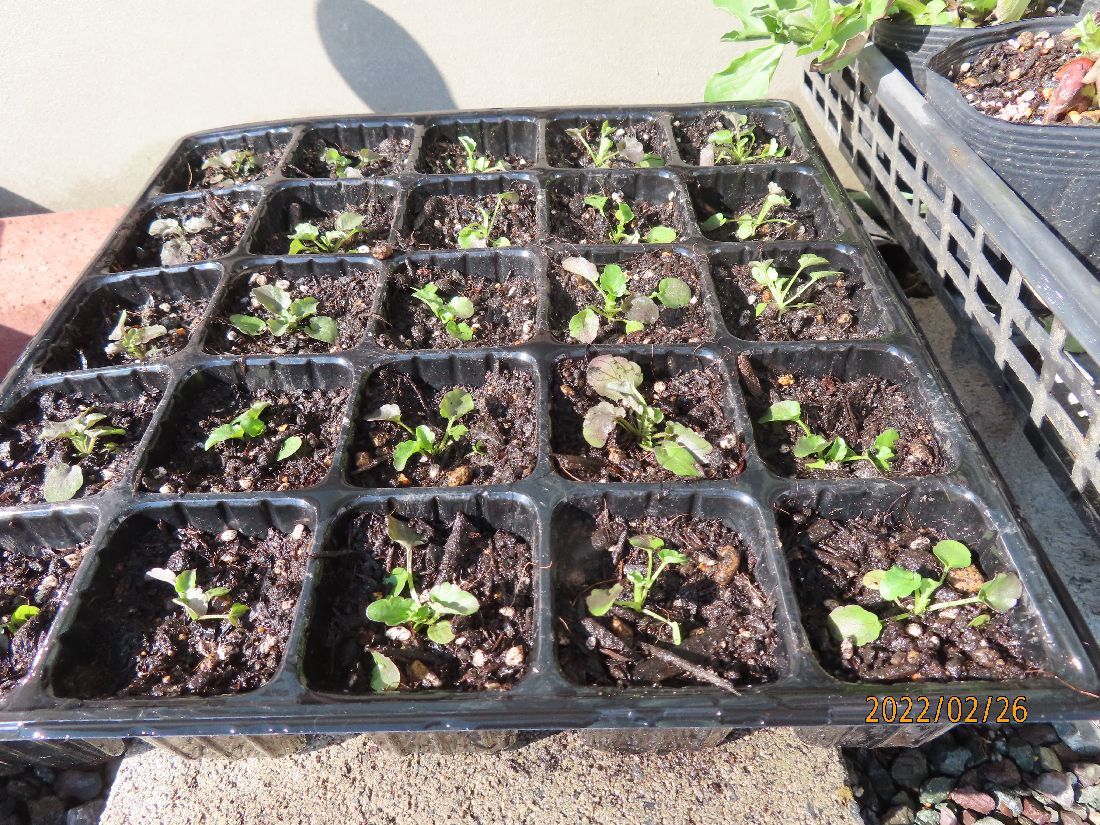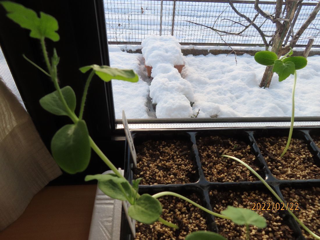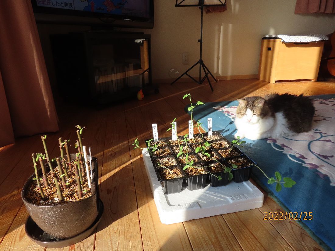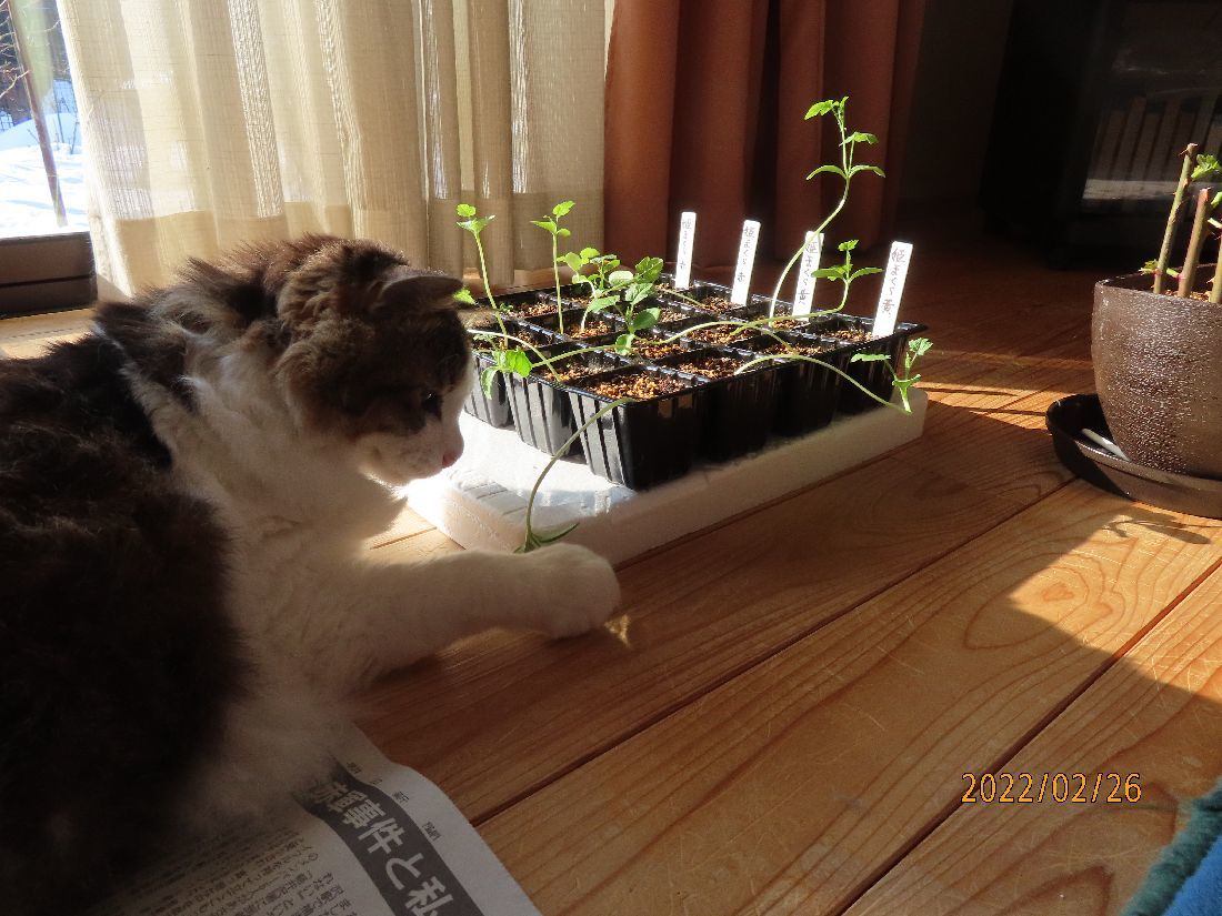 トレーのスイカ苗はヒョロヒョロのままです。