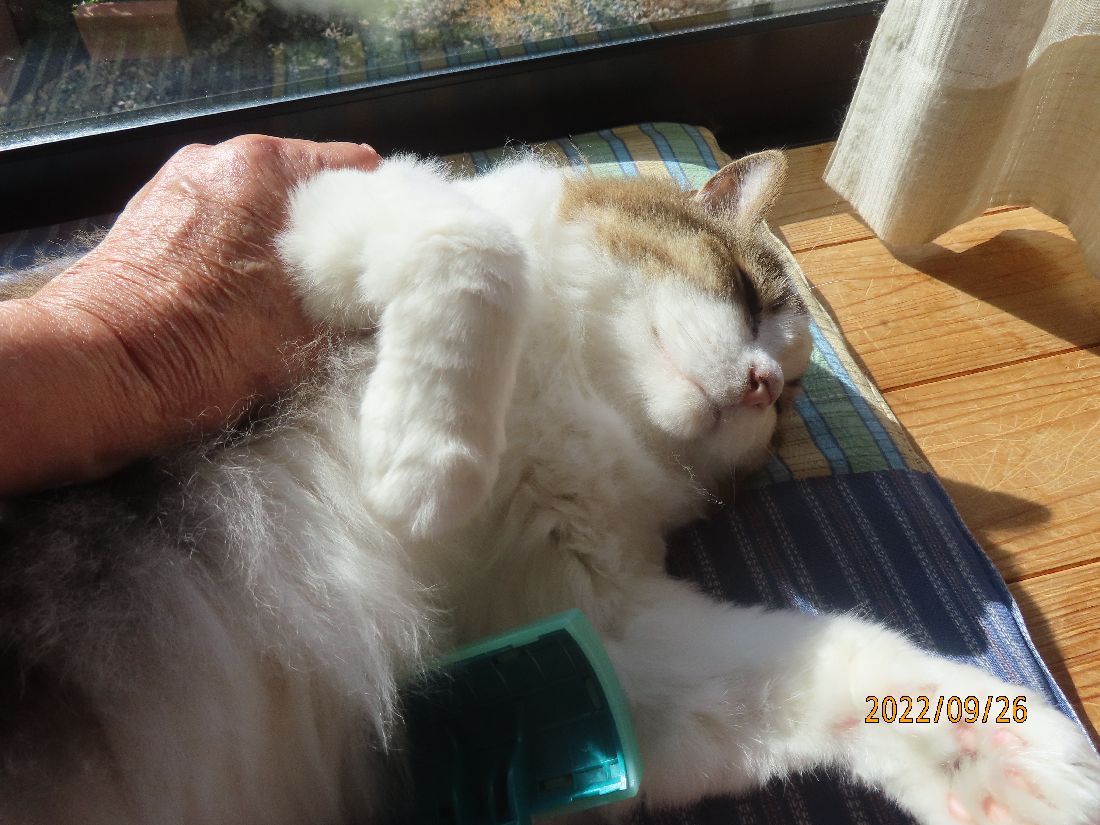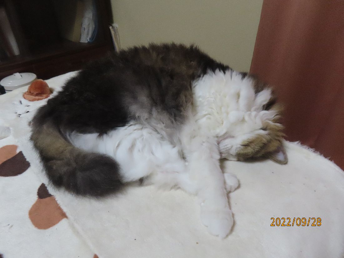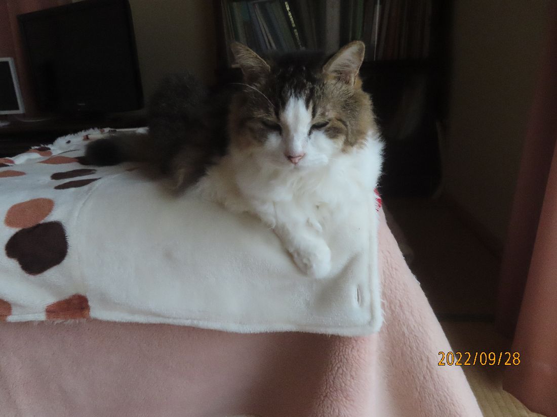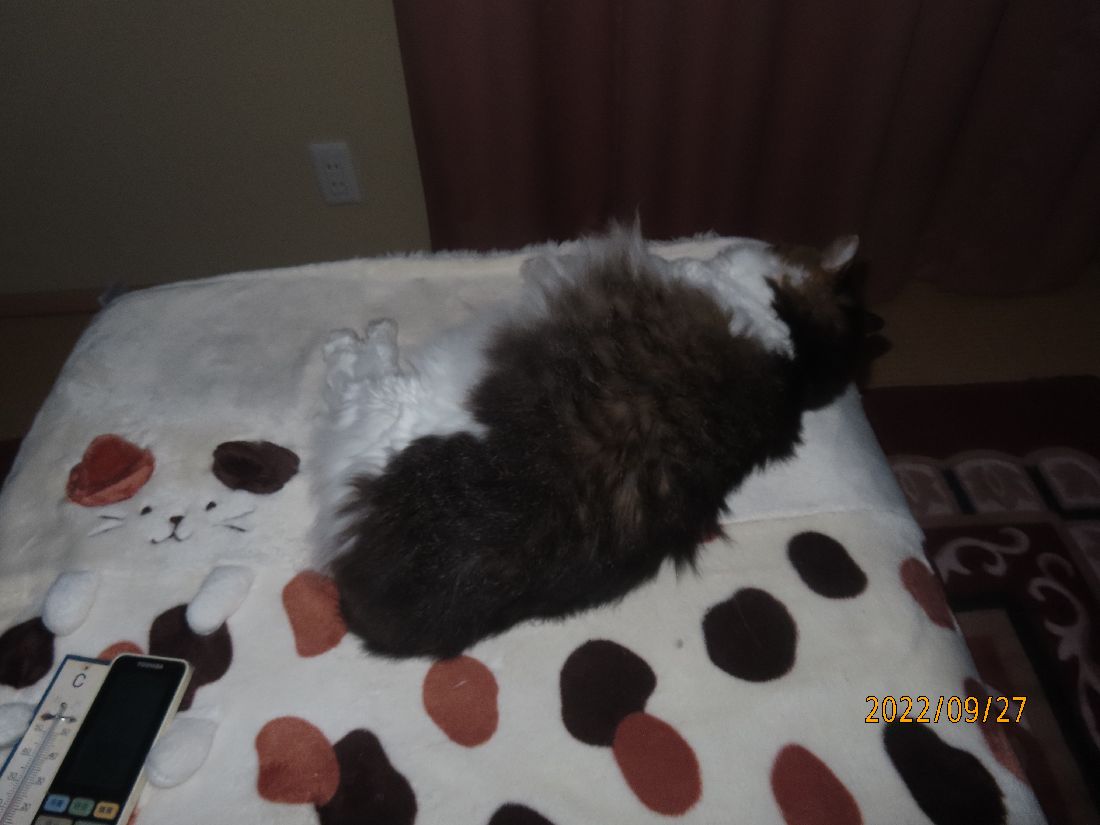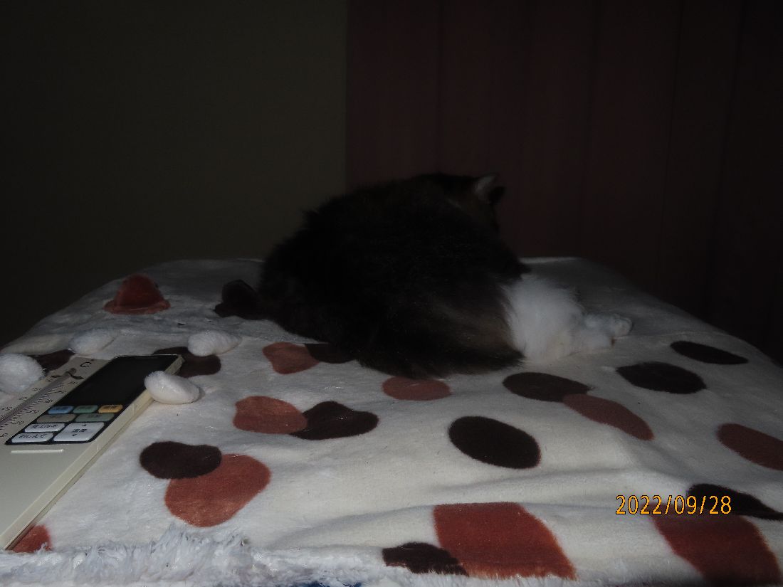 ふうちゃんは布団に潜っております。エアコンを点けて出発です。