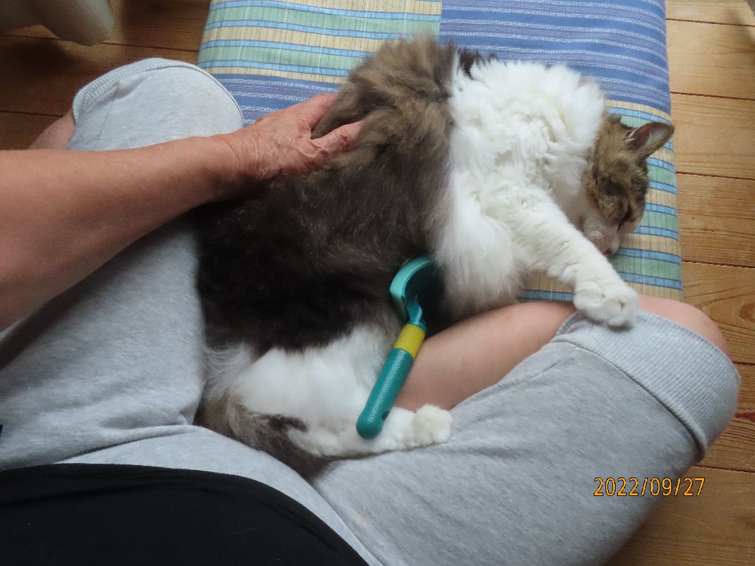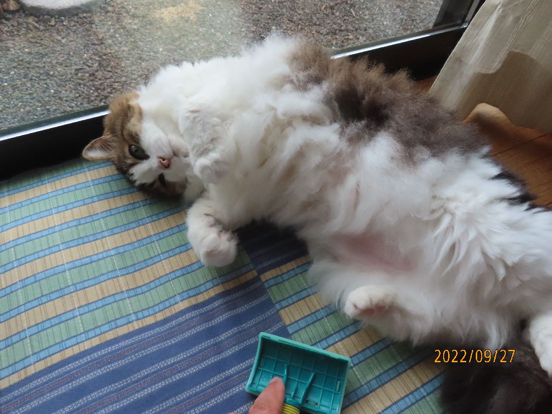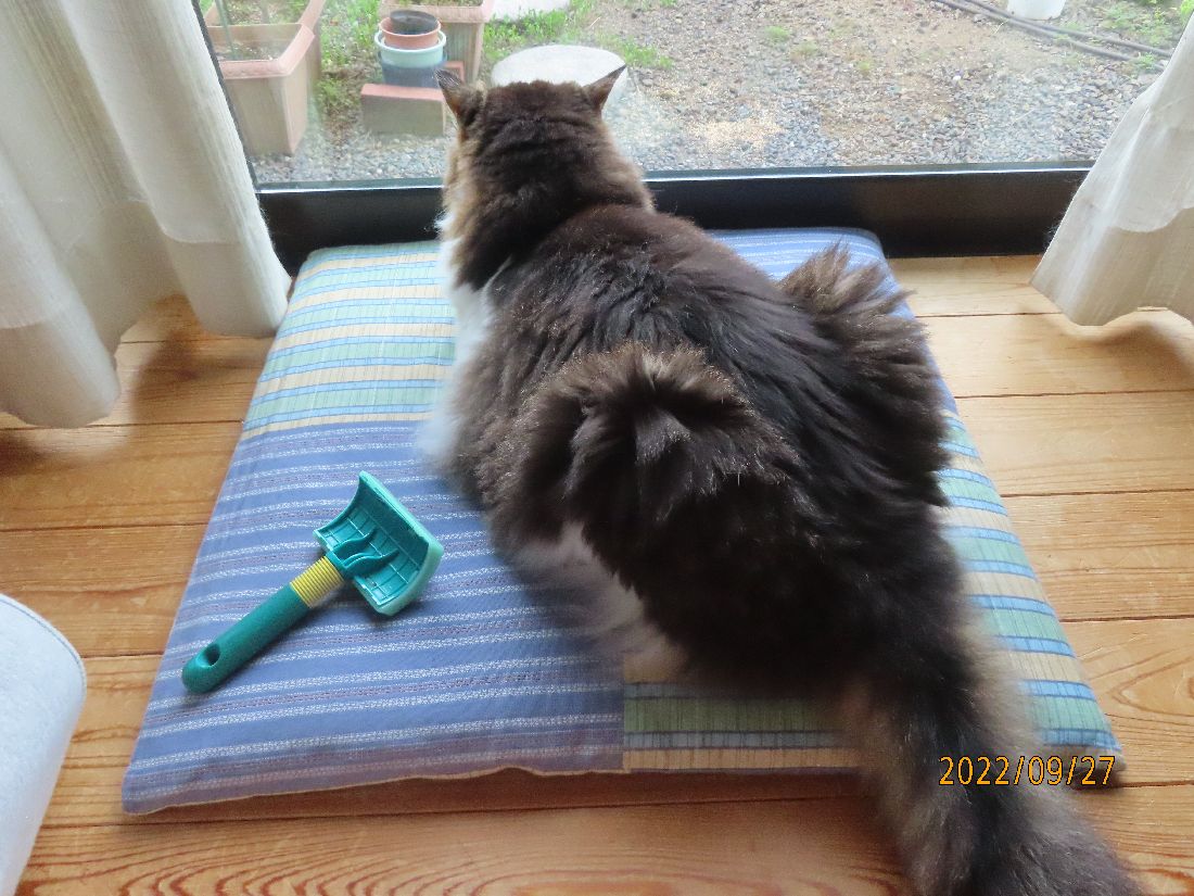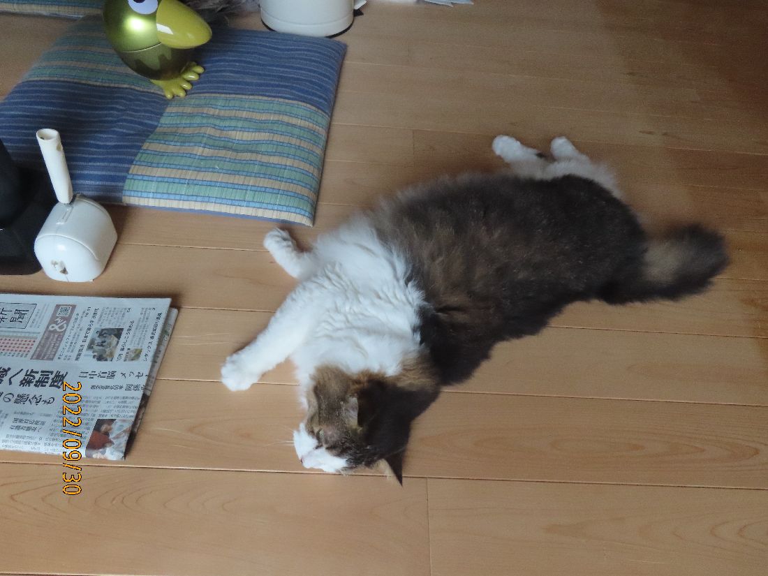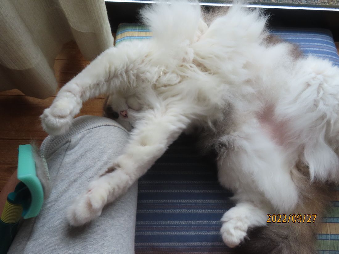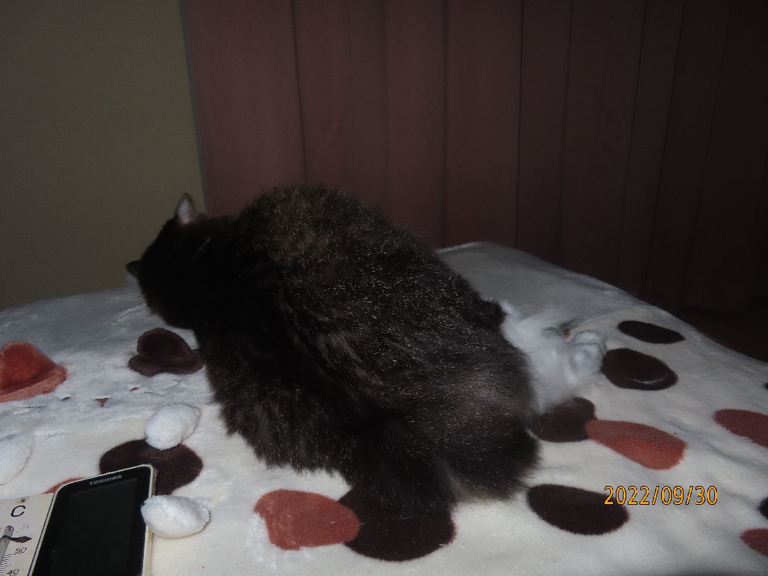 ふうちゃんは布団に潜っております。エアコンを点けて出発です。
