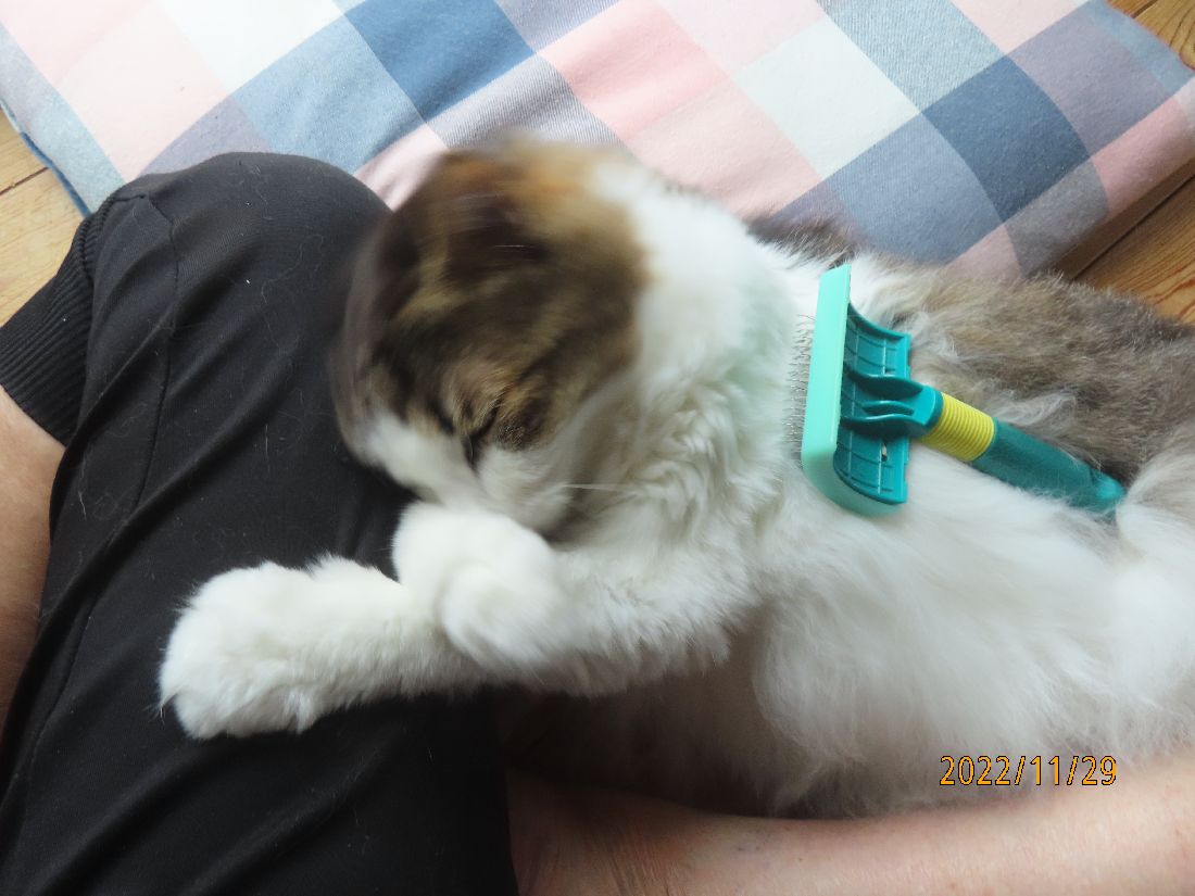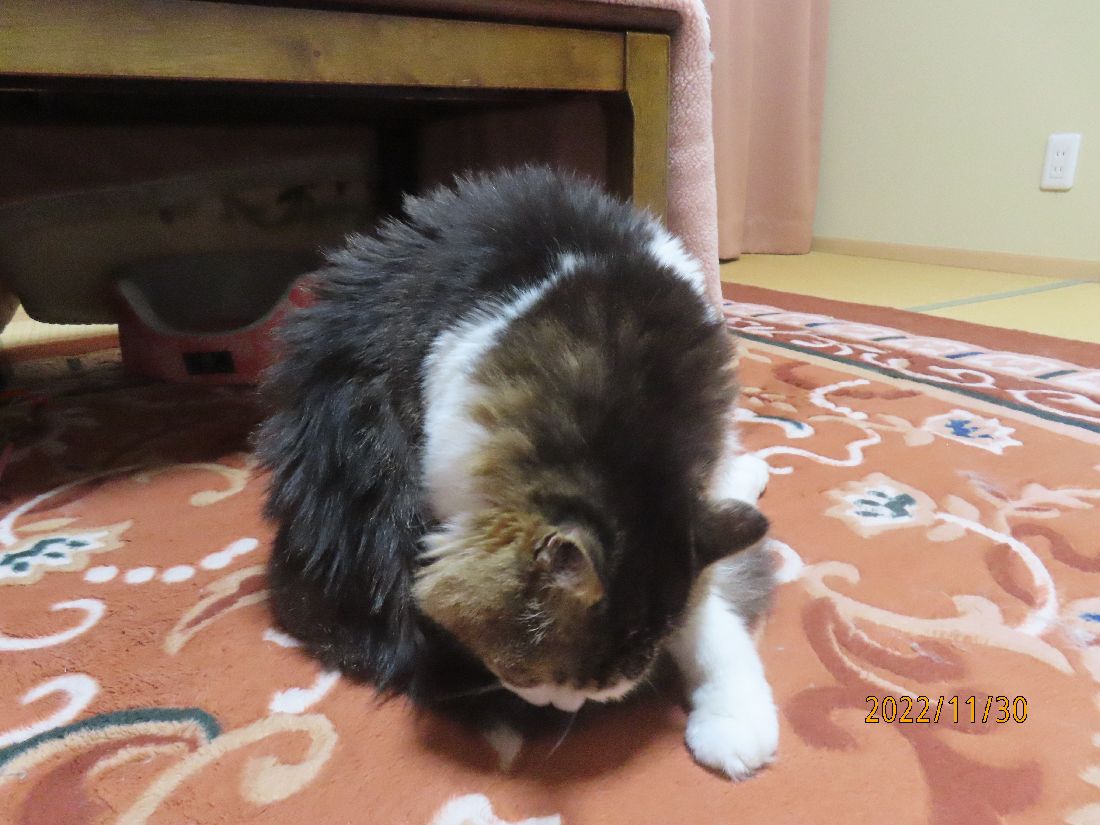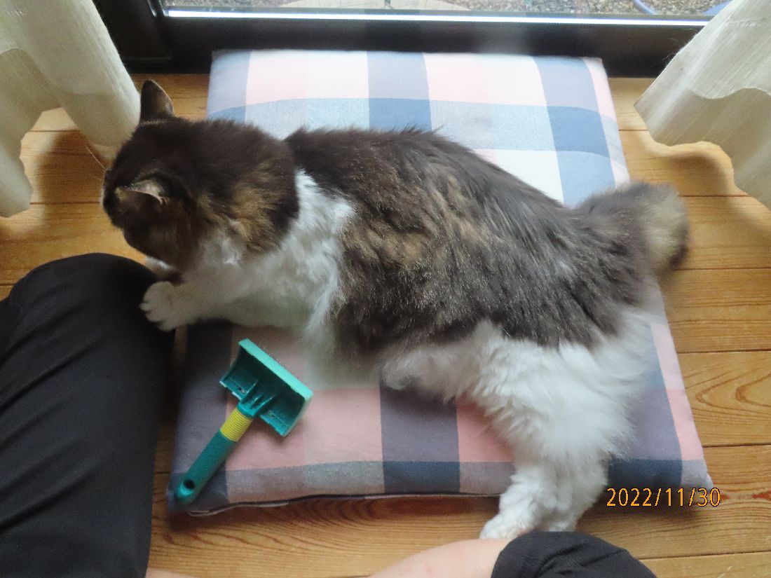今日もブログ更新の横で毛繕い。