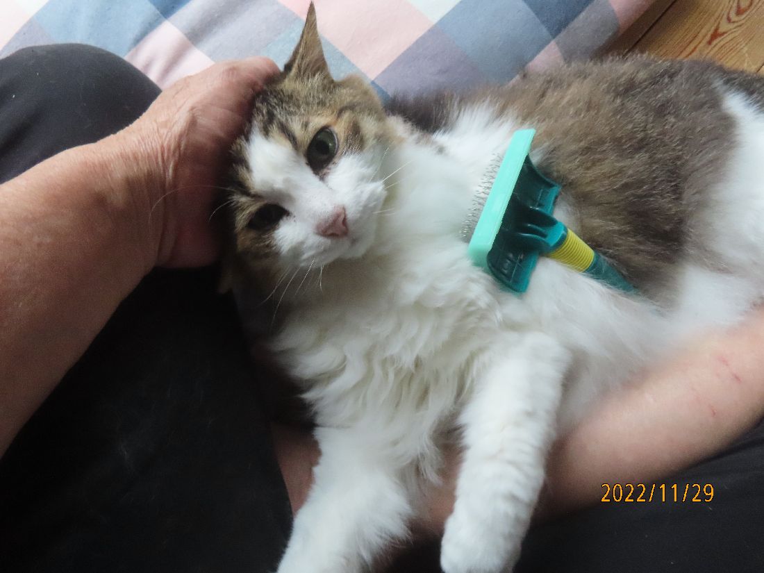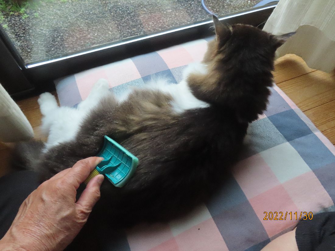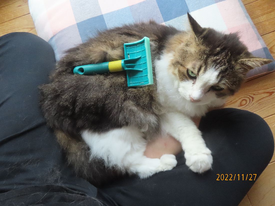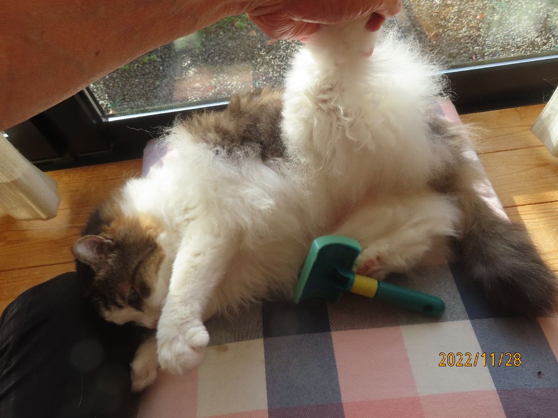 今日もブログ更新の横で毛繕い。