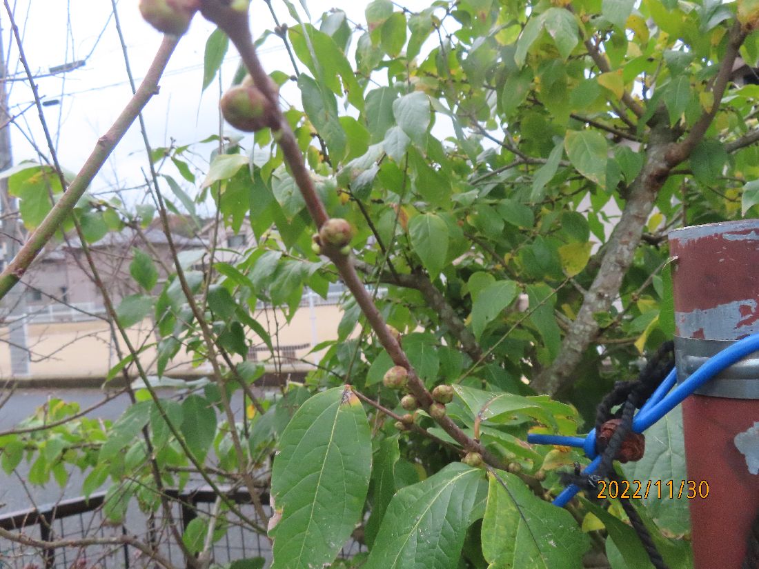 ロウバイの芽が膨らんできました。