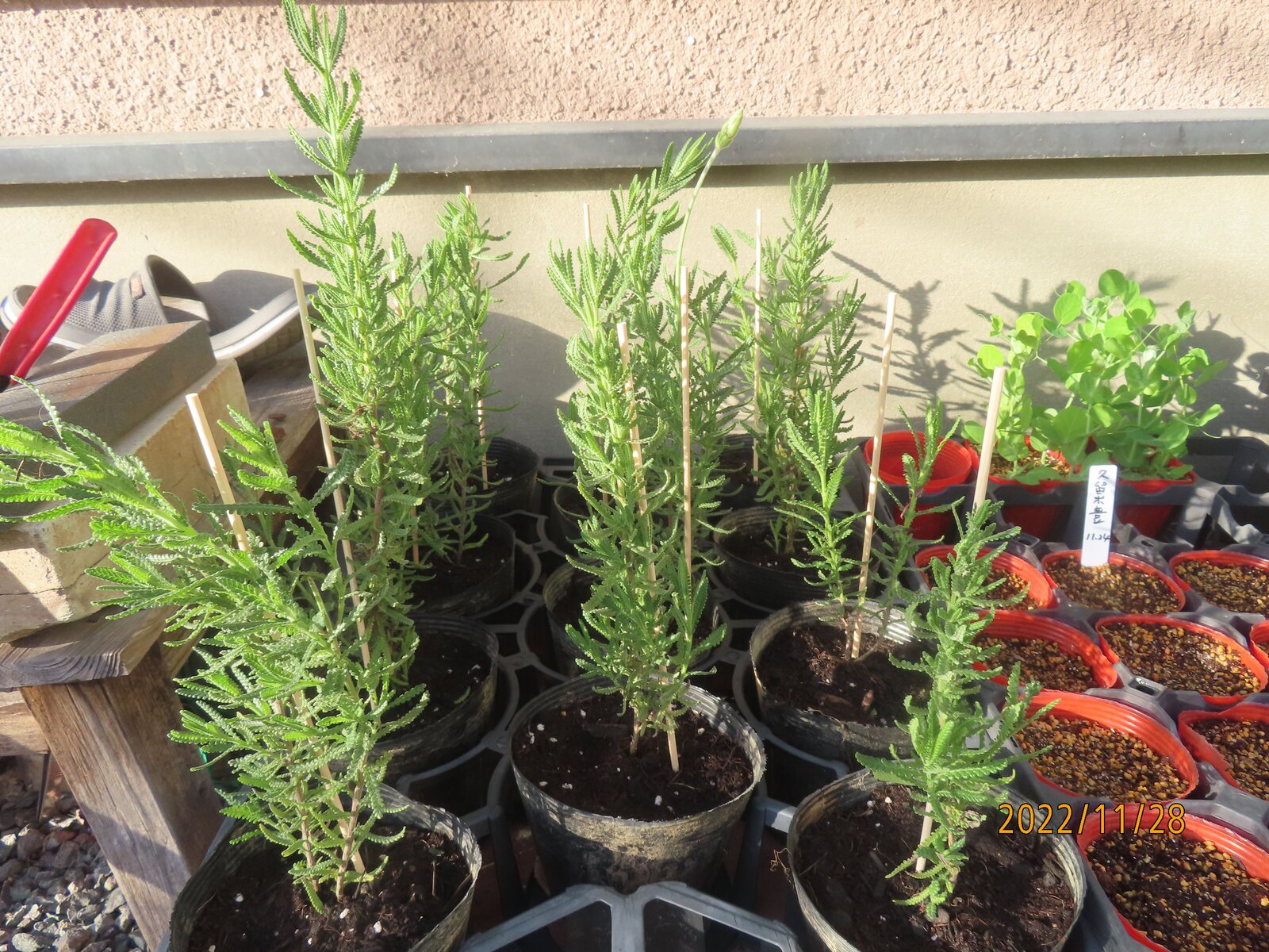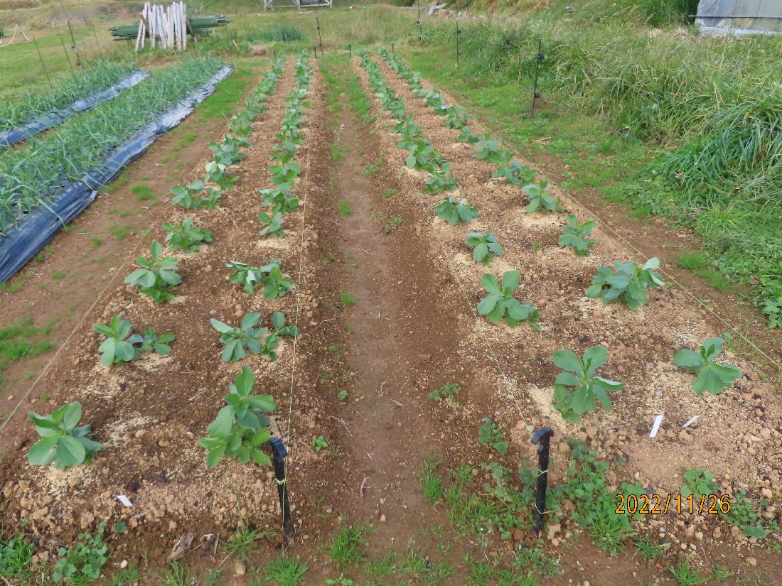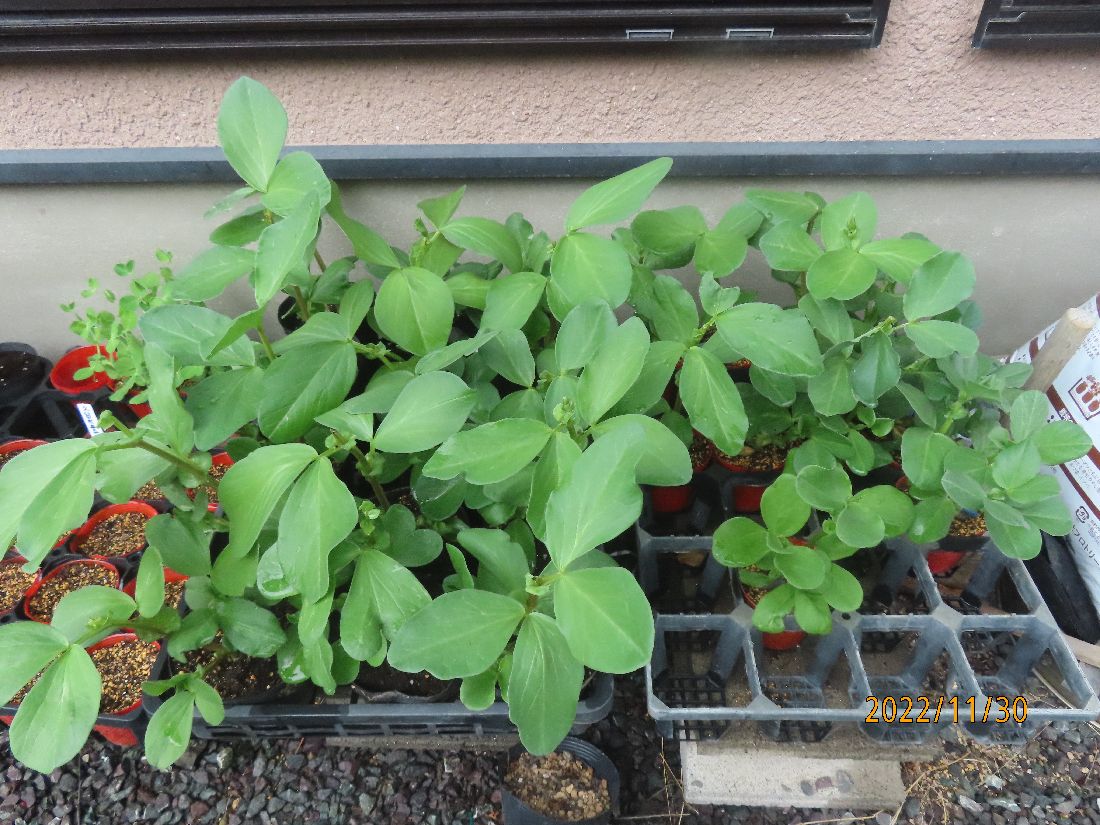 ソラマメの予備苗。やや徒長気味です。