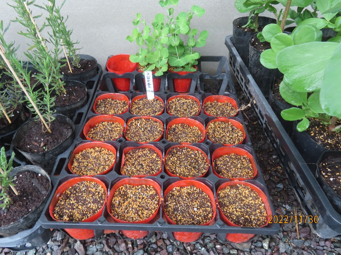 エンドウの予備苗作り。種蒔きから一週間ですがまだ発芽していません。