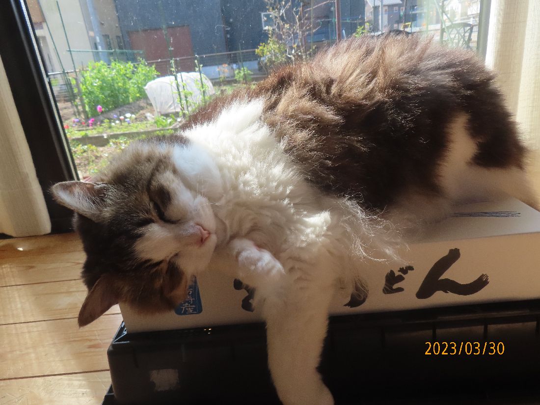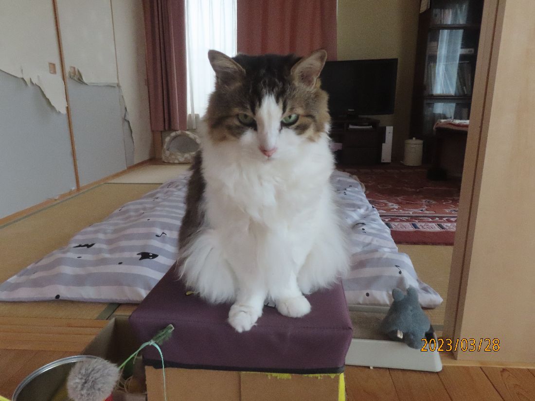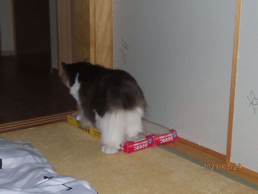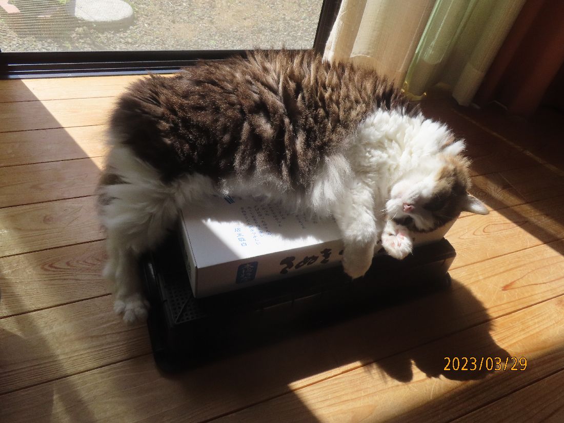 あいた箱にはすかさずふうちゃん。
