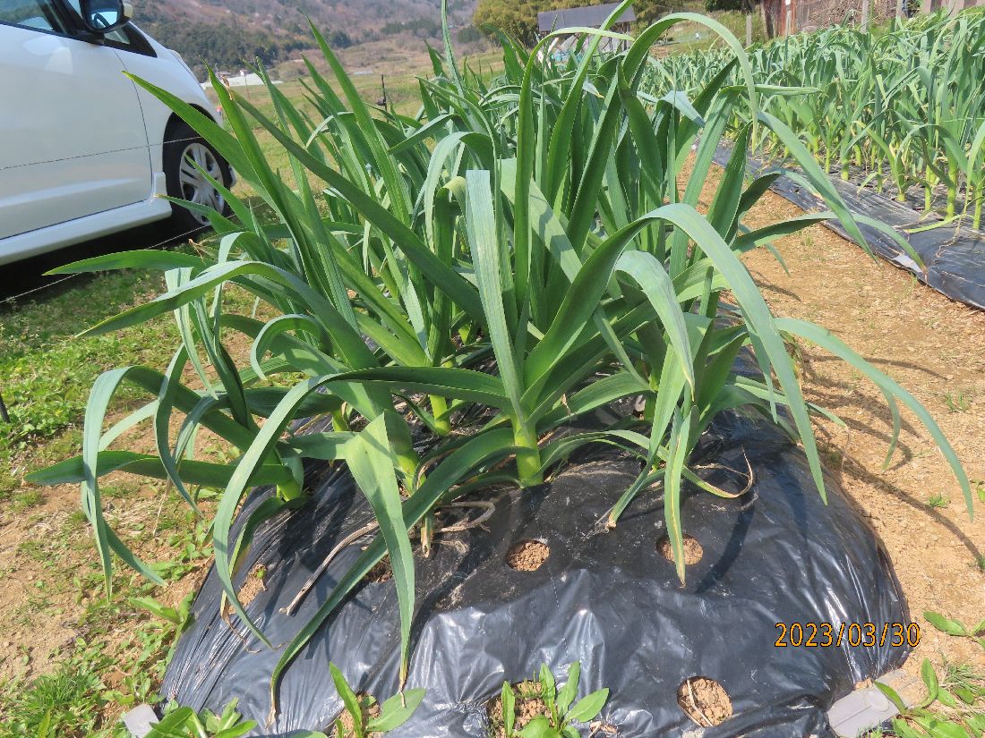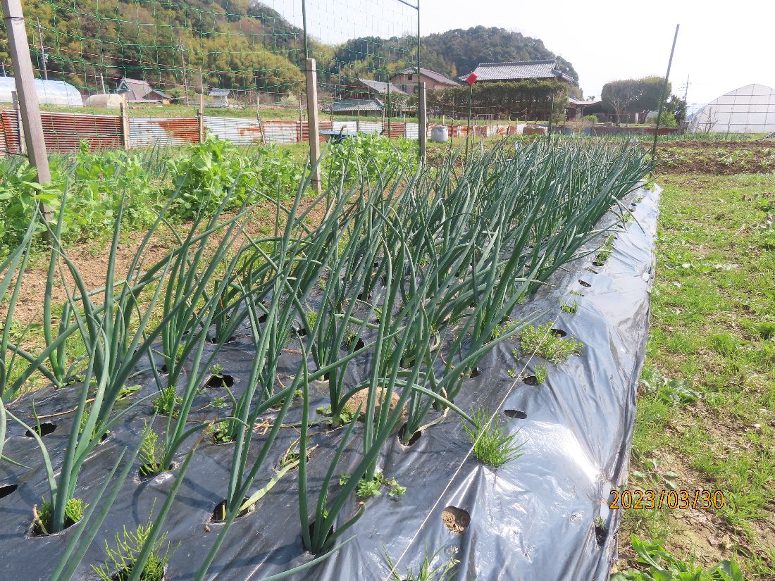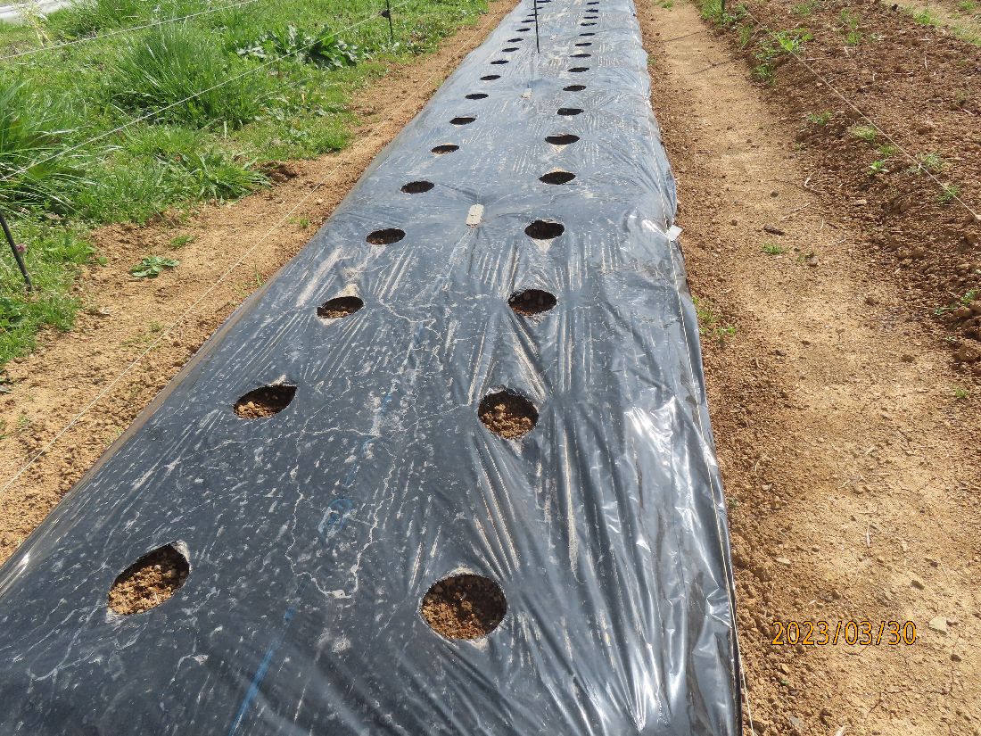 夕方、ビニールトンネルを閉じます。