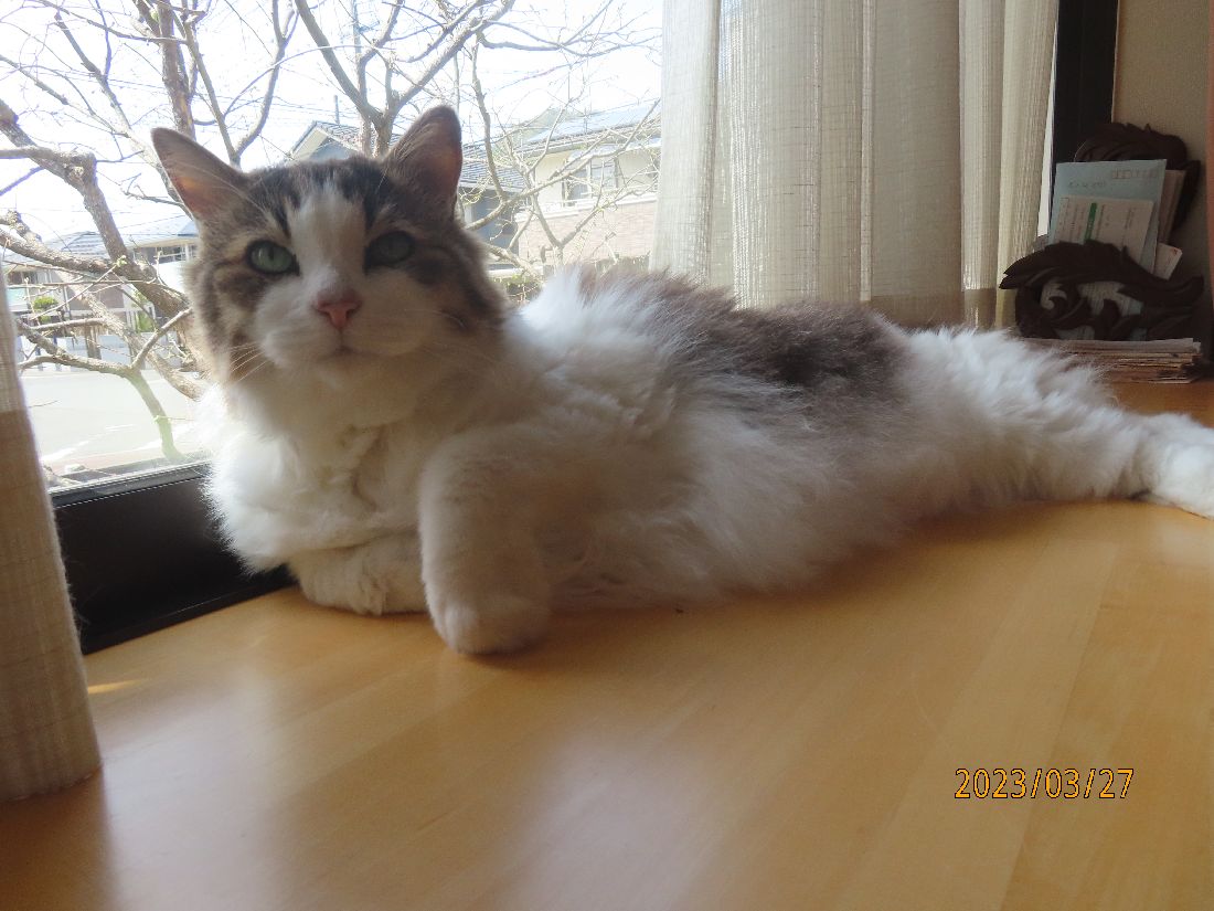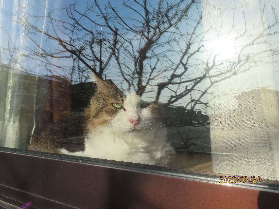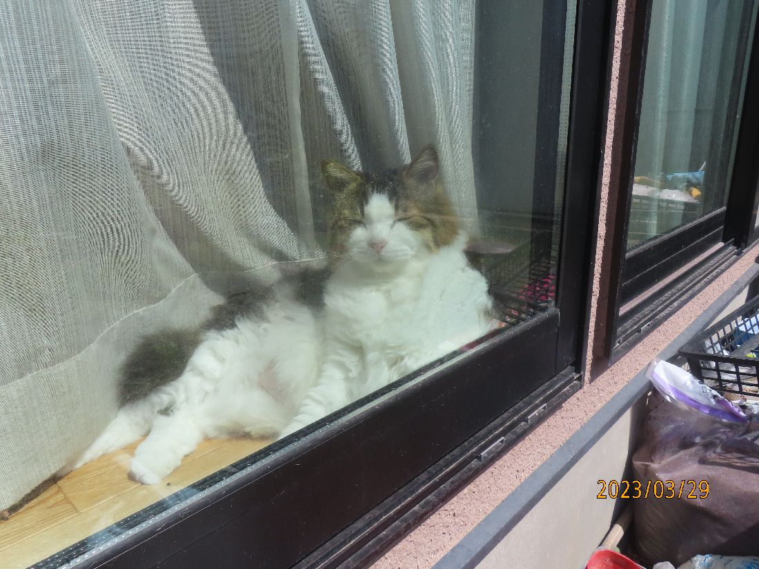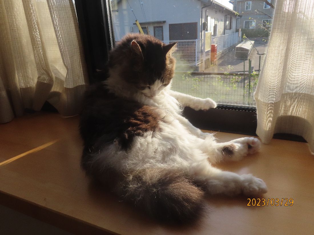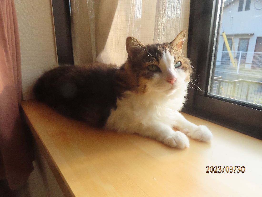 夕方、出窓のふうちやん。