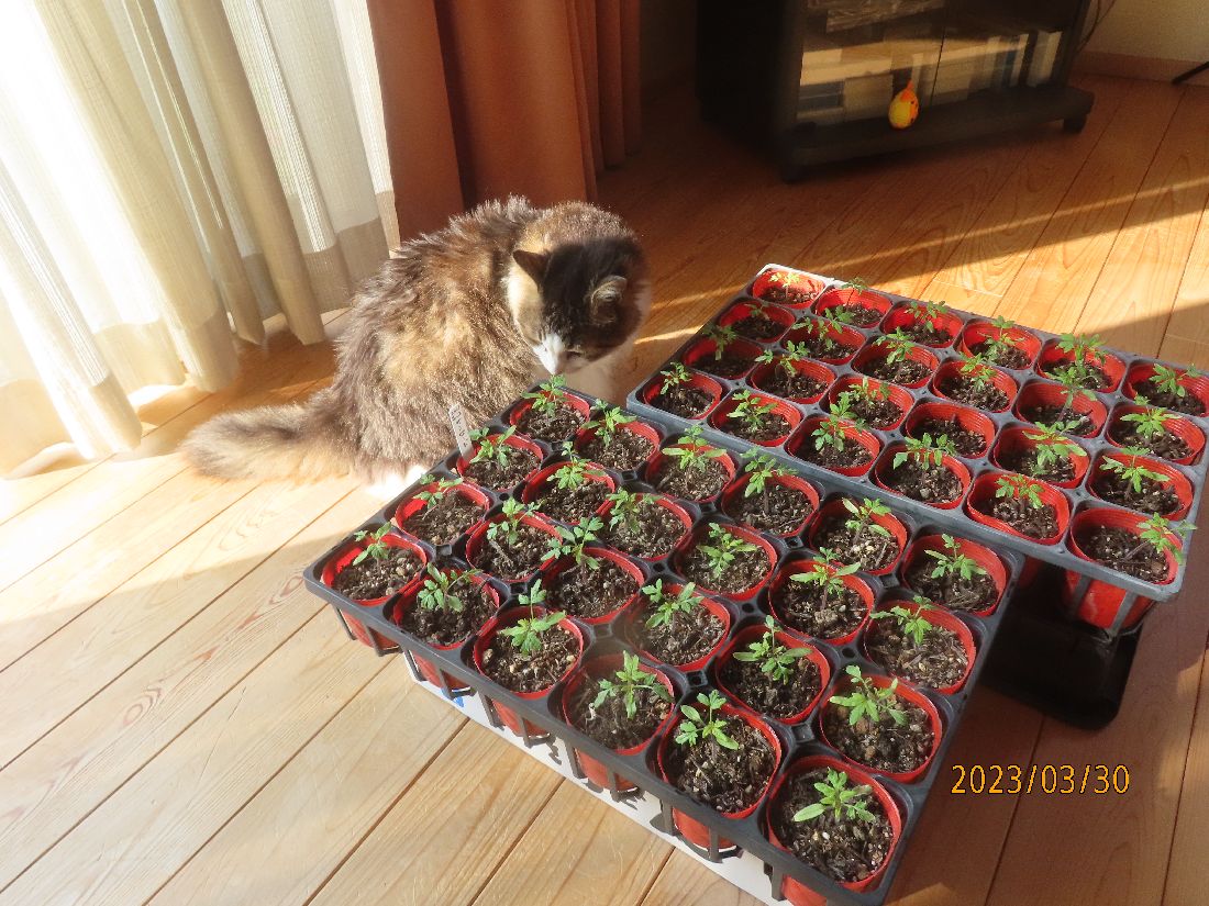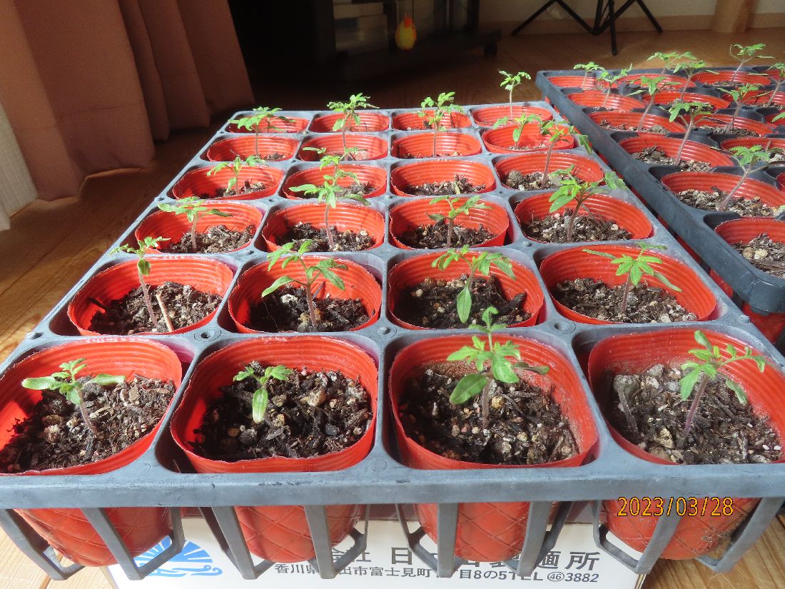 トマト苗を外へ出します。