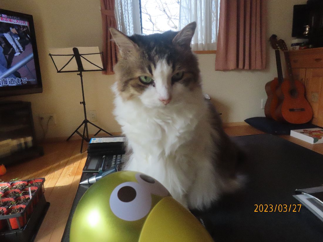 和室でPCを立ち上げていると、後ろで「ふにゃ~」
