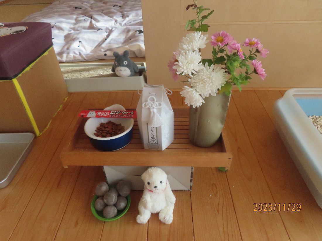 ふうちゃんに庭の菊をお供えしました。今日で20日になりました。