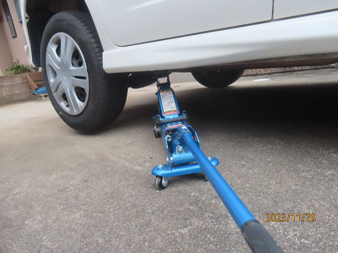 車の下にあてがってキコキコキコ・・・負荷が掛かり始めるとそれ以上上がりません。