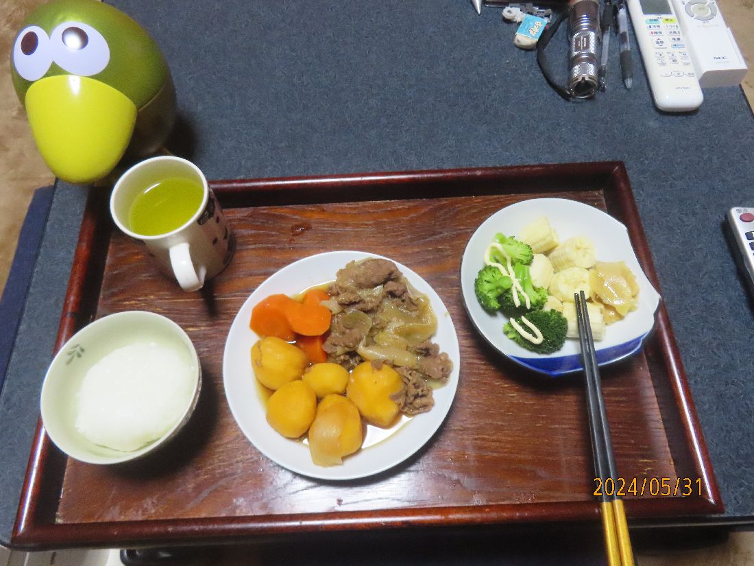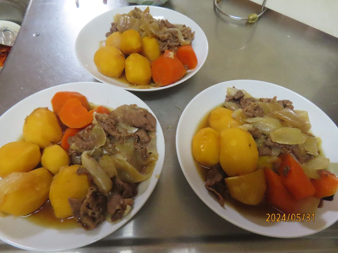 肉じゃがは三日分。黄色いじゃがいもは煮崩れせずおいしいです。