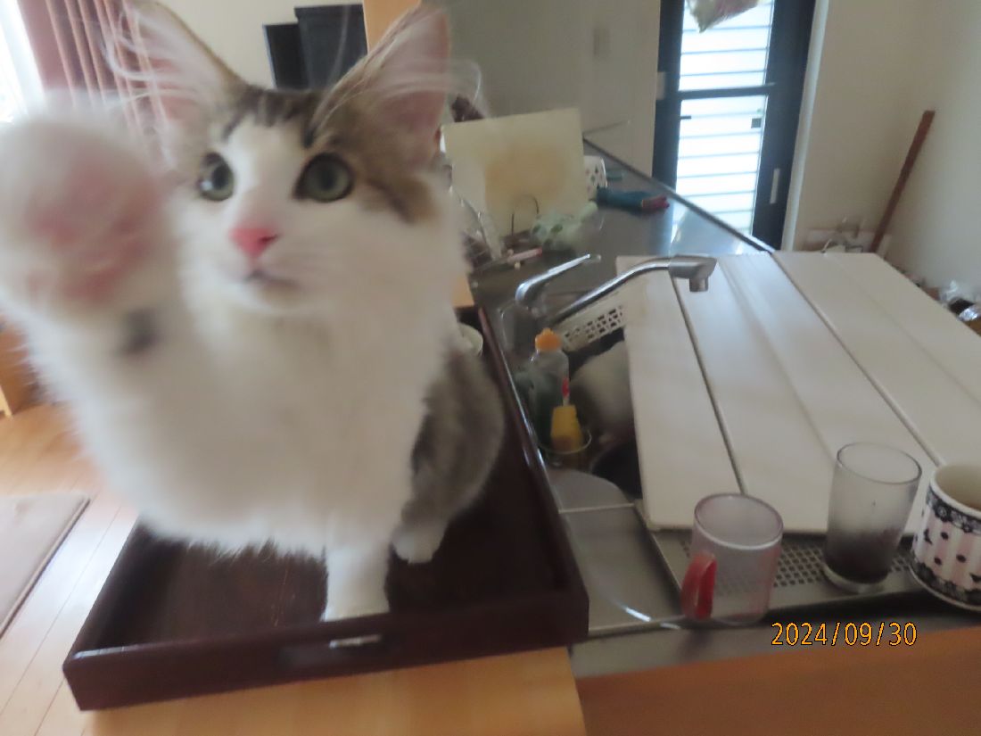 さつき君はブドウが好きみたいです。ペロペロ舐めていますよ。