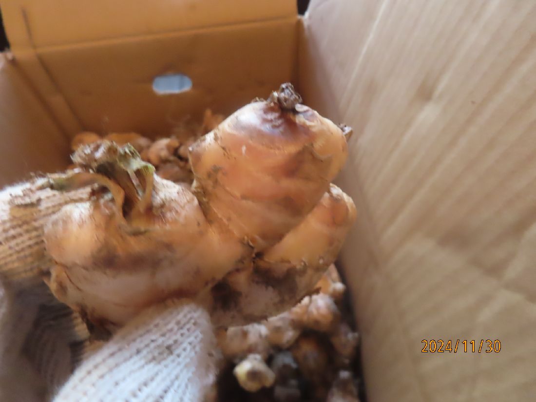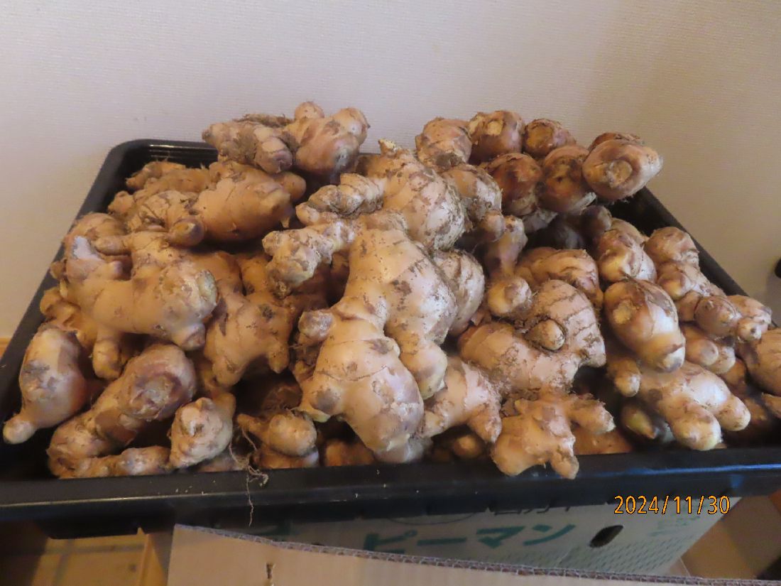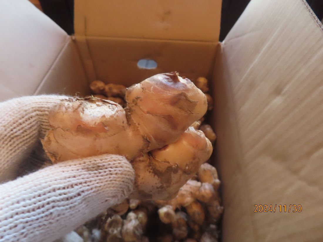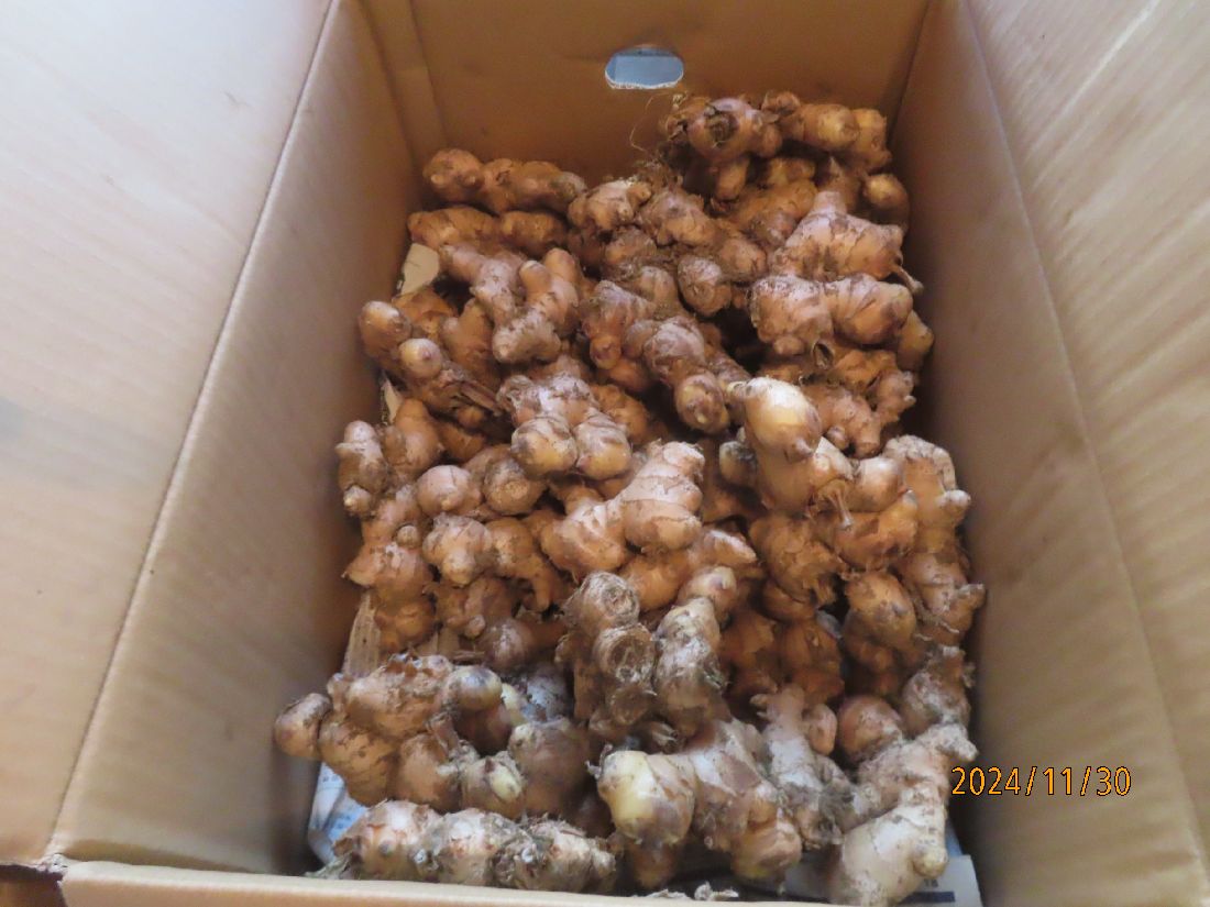 玄関の段ボールにショウガが入っていました。